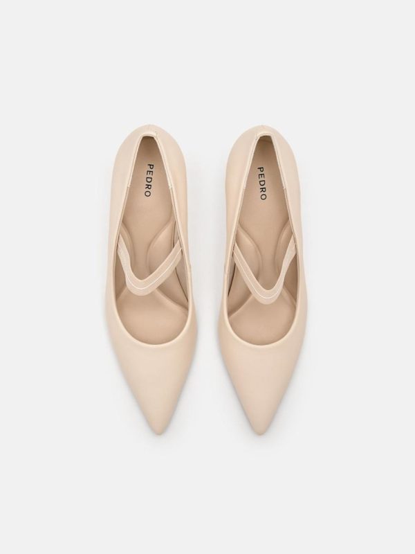 Discover the essence of contemporary elegance with the Eris Heel Pumps in beige. Showcasing a distinctive comma heel that merges grace with stability, these sandals feature an elastic band over the upper, enhancing both security and style. The pointed toe lends a refined touch, effortlessly transitioning from day to evening wear with sophistication and ease.