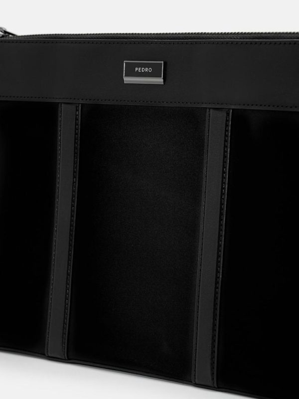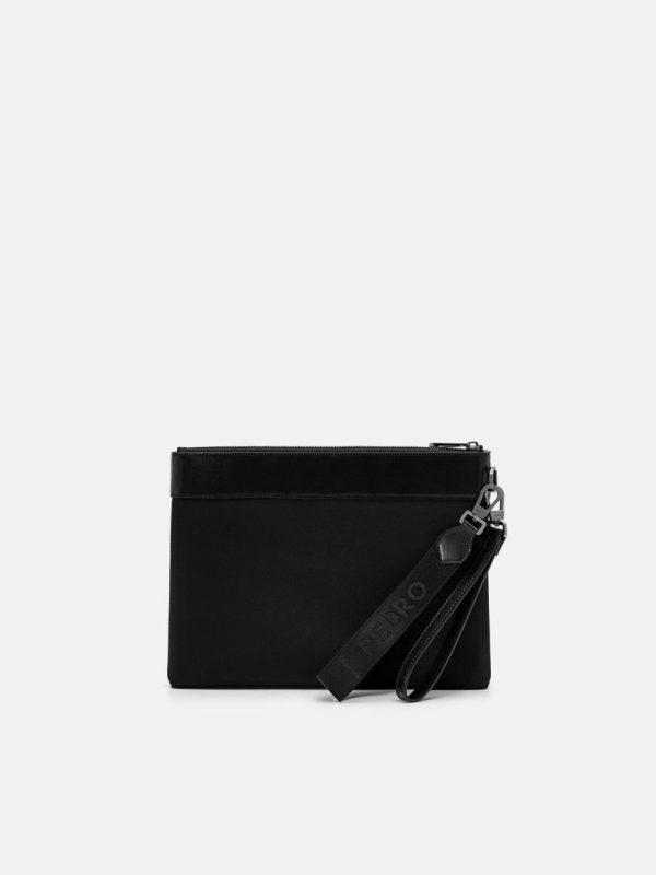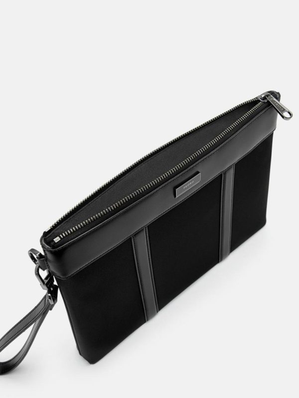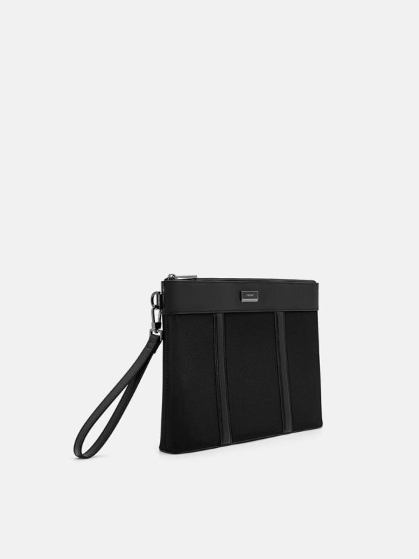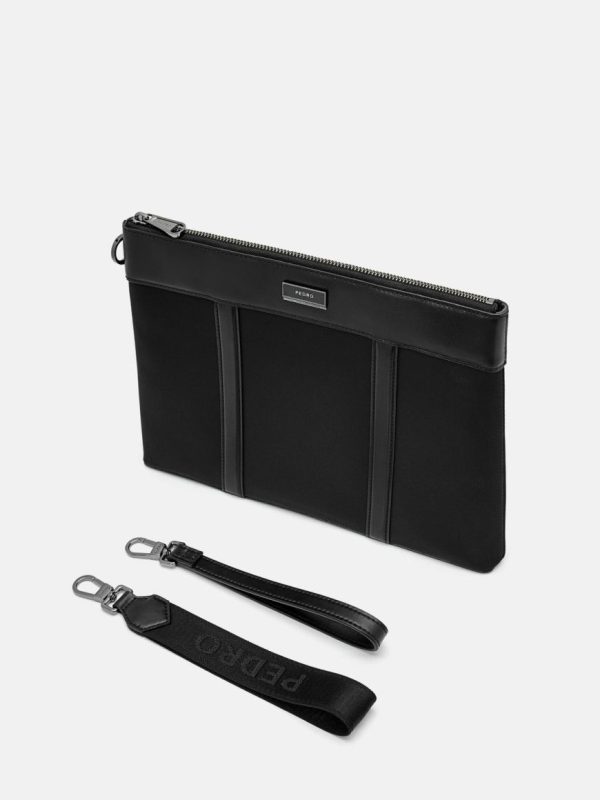 Elevate your professional look with the Allen Fabric Portfolio Bag in black, featuring a squared and sharp profile that exudes contemporary elegance and durability. The inclusion of a wristlet offers convenient carrying options, while the secure zipper closure ensures your essentials are safely stowed. Ideal for the professional environment, it seamlessly combines style with practicality, making it perfect for workday essentials or transitioning from office to after-hours events with ease.