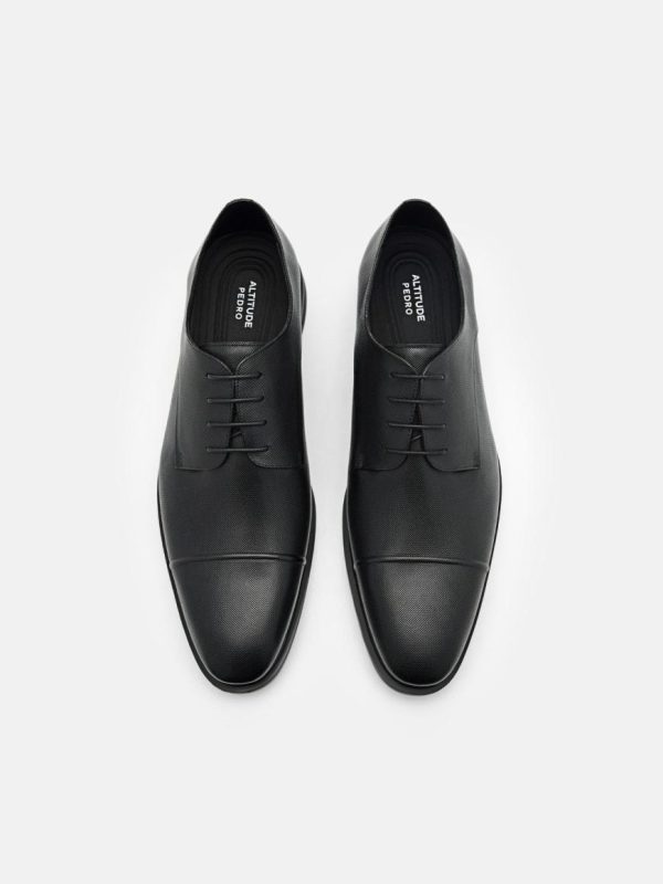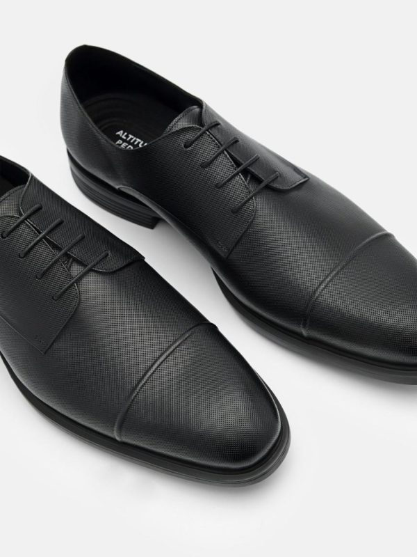 Experience the perfect fusion of timeless sophistication and contemporary style with our Black Altitude Leather Derby Shoes. Designed for exceptional comfort and effortless movement, these premium lace-ups feature lightweight construction that keeps you going all day. The rich embossed calf leather delivers both superior durability and a polished appearance that elevates any outfit.