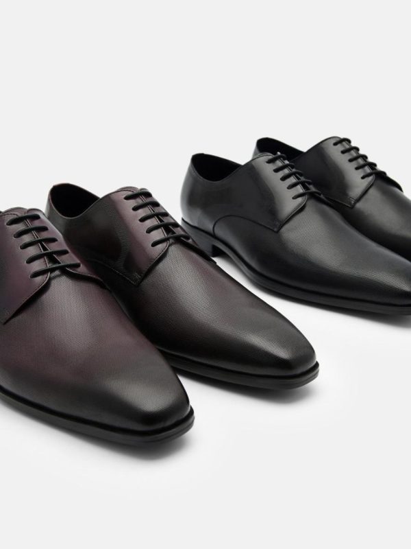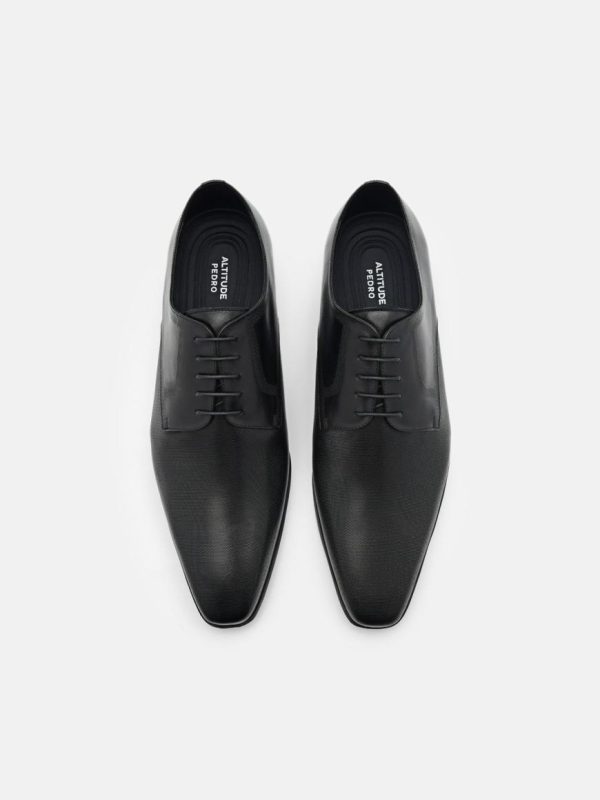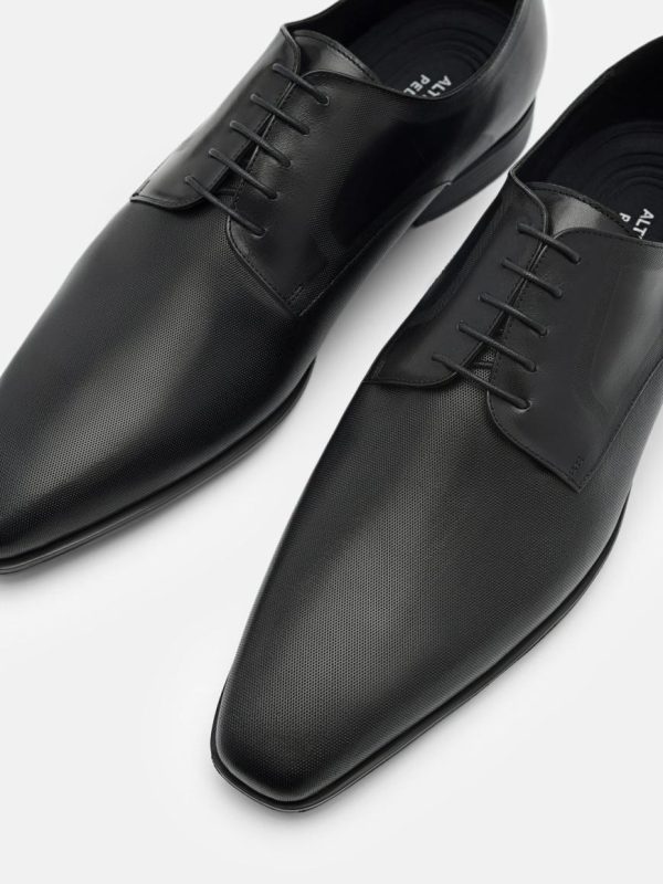 Offering not impeccable style and unmatched comfort, the Altitude Lightweight Embossed Leather Derby Shoes in black are made from embossed burnished calf leather for a unique texture that is both distinctive and durable. The integrated Altitude outsole reduces the overall weight of the shoe, allowing for a more effortless and comfortable stride.