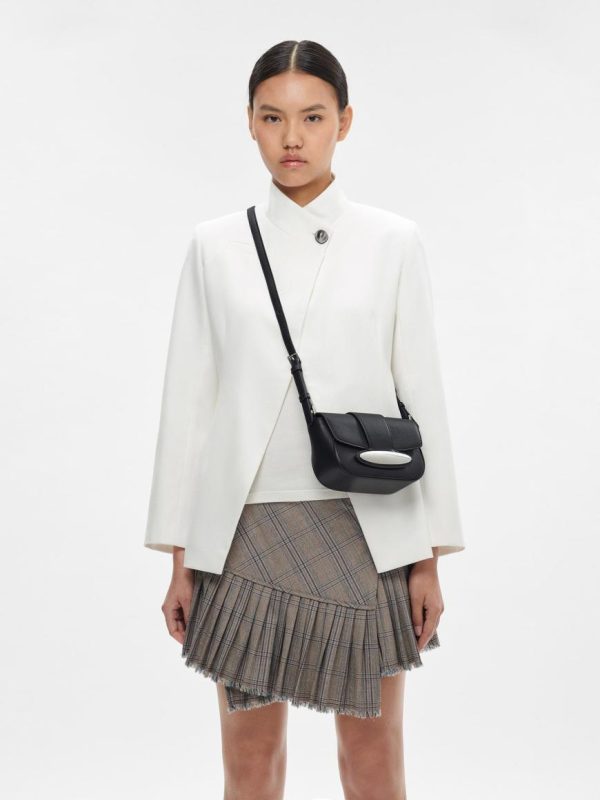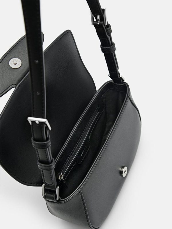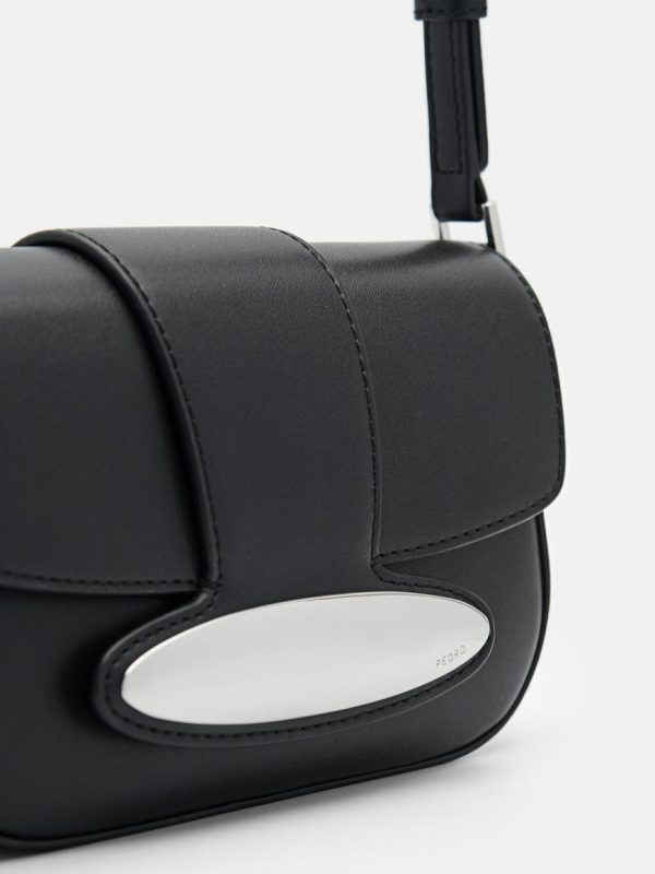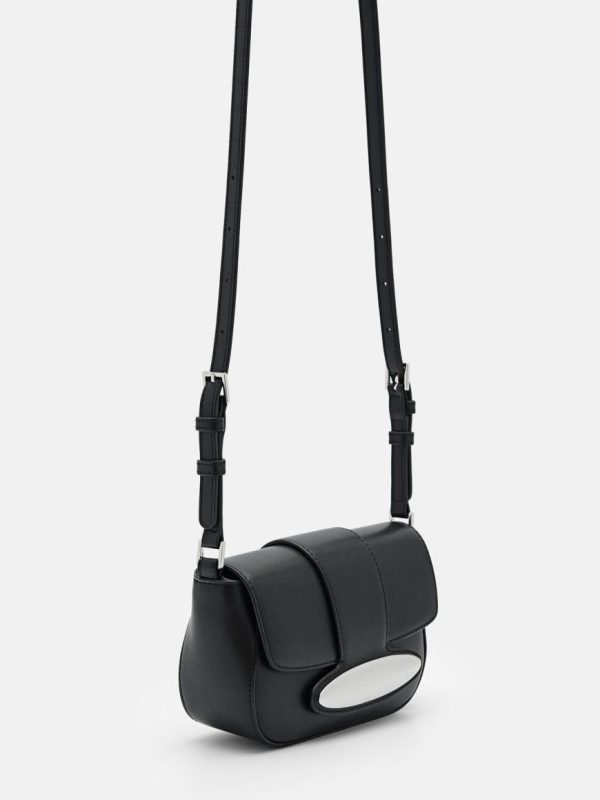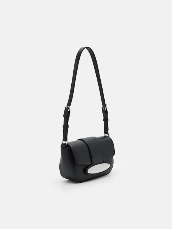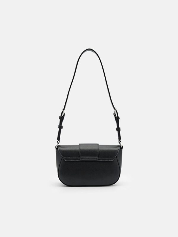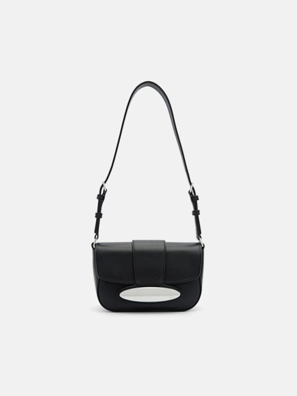 Packing a punch with its eye-catching appeal and unique style, the Dione Mini Shoulder Bag in black is sure to turn heads. Featuring a compact silhouette for your essentials, the high-shine elliptical hardware adds a contemporary touch of elegance, while the zipper closure and fluid stitching make this mini marvel as practical as it is chic.