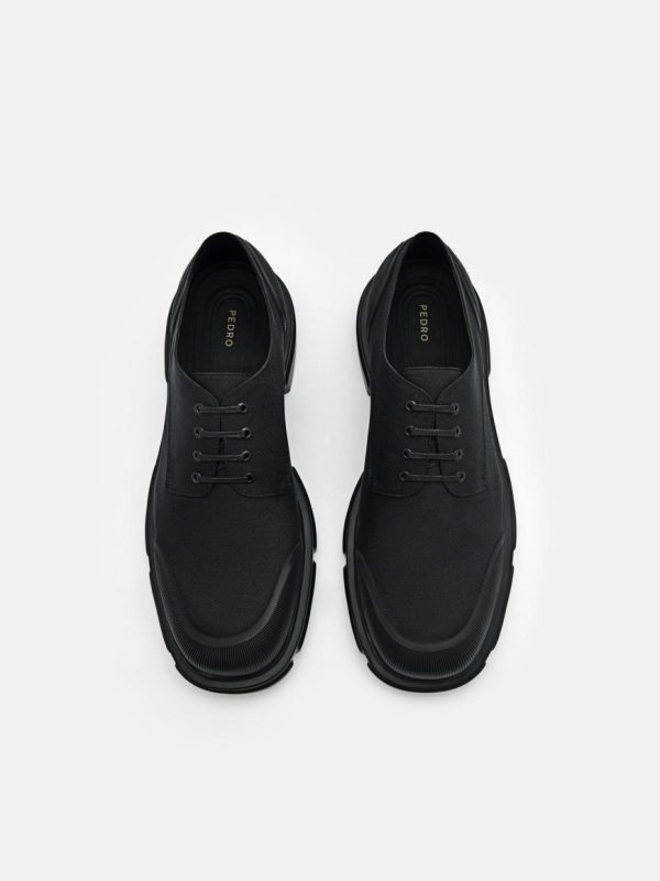 Elevate your urban wardrobe with the Ellis Derby Shoes, featuring a modern twist on classic design. These black lace-ups combine rugged durability with contemporary sophistication, perfect for navigating city streets with confidence. The reinforced rubber heel and toe cap provide lasting protection, while the chunky outsole delivers both style and stability for all-day comfort.