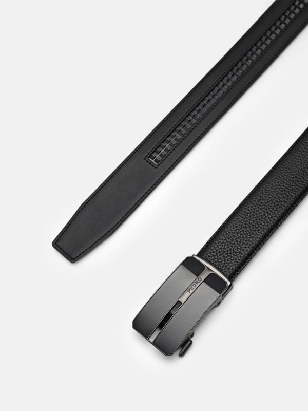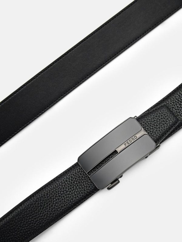 The Embossed Leather Automatic Belt redefines the balance between functionality and design, offering a seamless expression of contemporary sophistication. Crafted from embossed calf leather, its tactile surface exudes understated elegance, while the modern high-shine buckle brings a bold contrast.