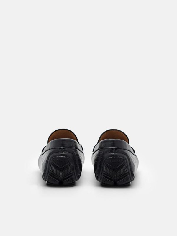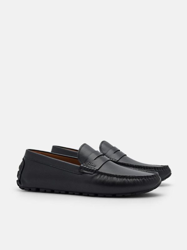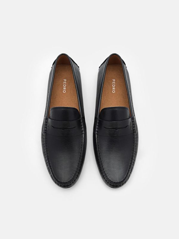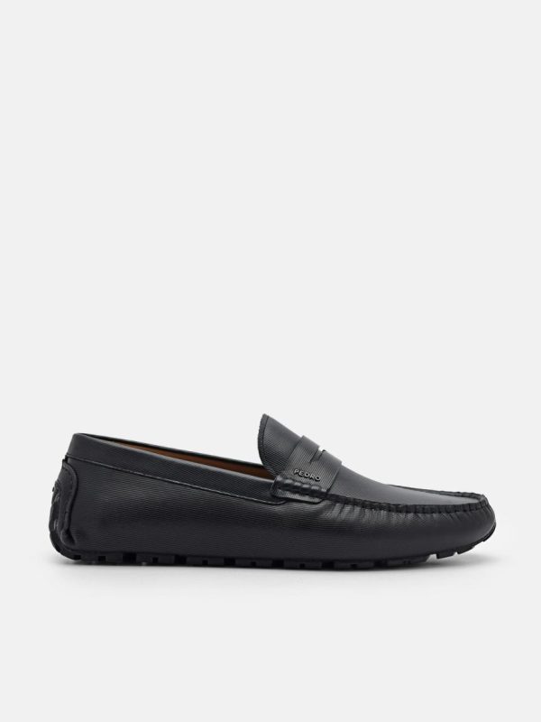 Built on a flexible rubber sole with authentic moccasin stitching, these Black Embossed Leather Penny Loafers deliver effortless style for smart casual occasions. Featuring a premium embossed calf leather upper, the signature penny strap adds sophisticated detailing that elevates any outfit.