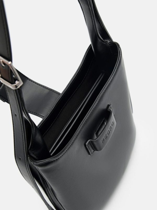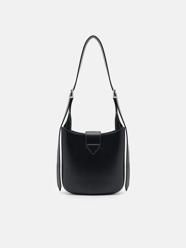Elevate your style effortlessly with the structured silhouette of the Fadia Shoulder Bag in black, designed to polish off any ensemble with finesse. he magnetic closure ensures both security and ease, while the same-tone branding adds a touch of refined elegance. With an adjustable shoulder strap, enjoy unparalleled carrying versatility without compromising on sleek design. Redefine sophistication and make a statement with every step you take.