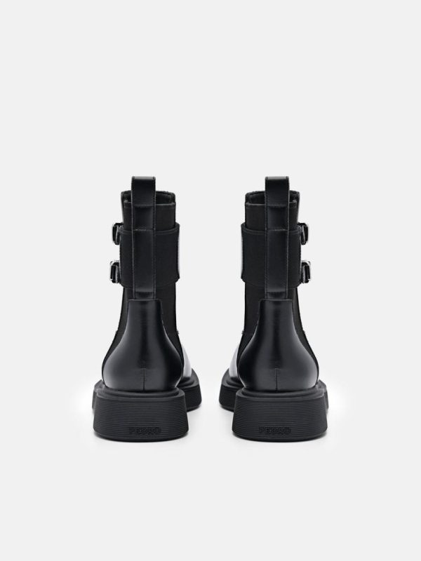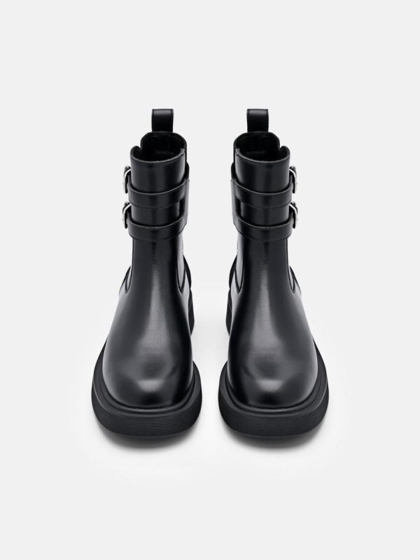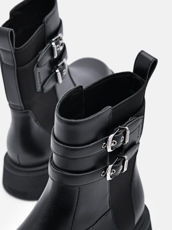 Crafted from calf leather, exude modernity with the Flo Leather Chelsea Boots in black. Elastic side panels and pull tabs ensure a comfortable and snug fit while dual buckle fastening adds a stylish edge. A chunky sole offers both traction and a distinctive impression from casual outings to upscale events.
