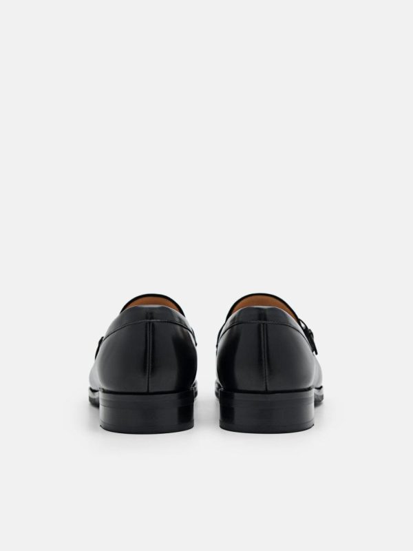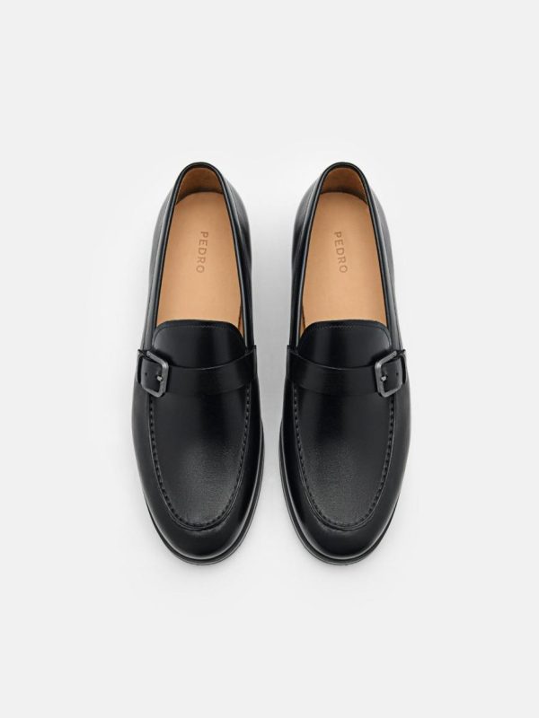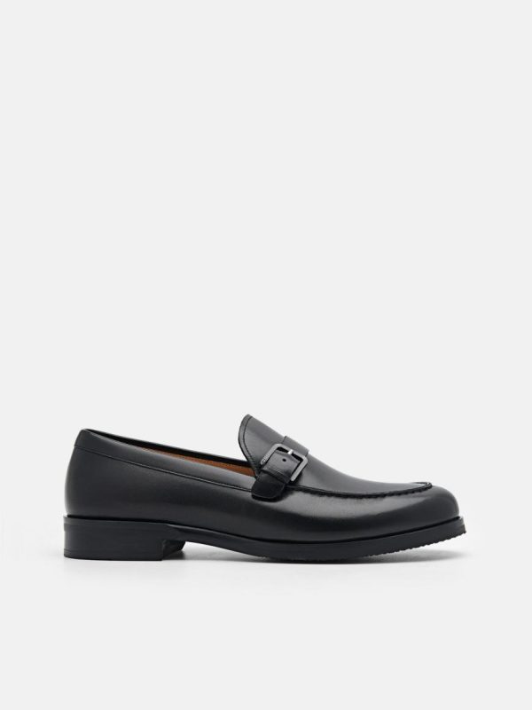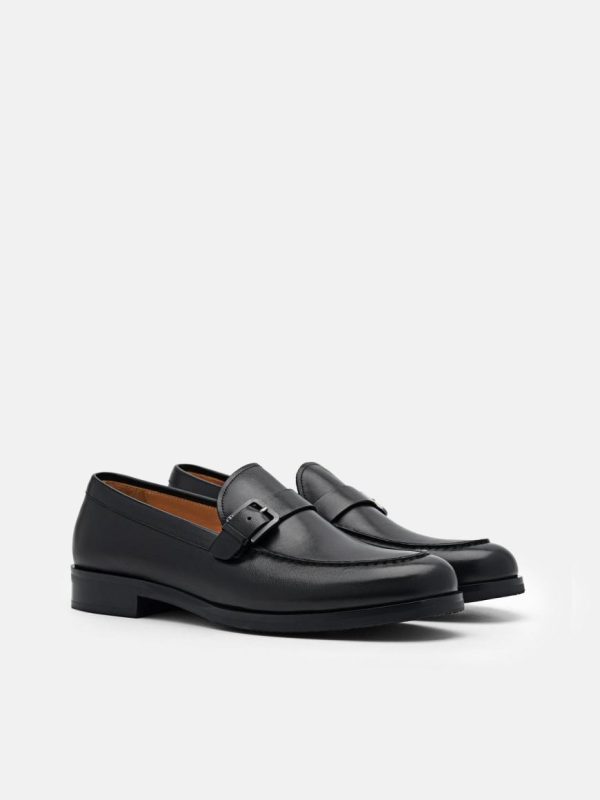 With a subtle sheen of burnished calf leather that adds a refined touch to any ensemble, the Gio Leather Loafers in black exude understated refinement with a contemporary flair. A bold buckle fastening serves as a sleek focal point, providing a hint of edge while securing the convenient slip-on silhouette for the discerning gentleman.