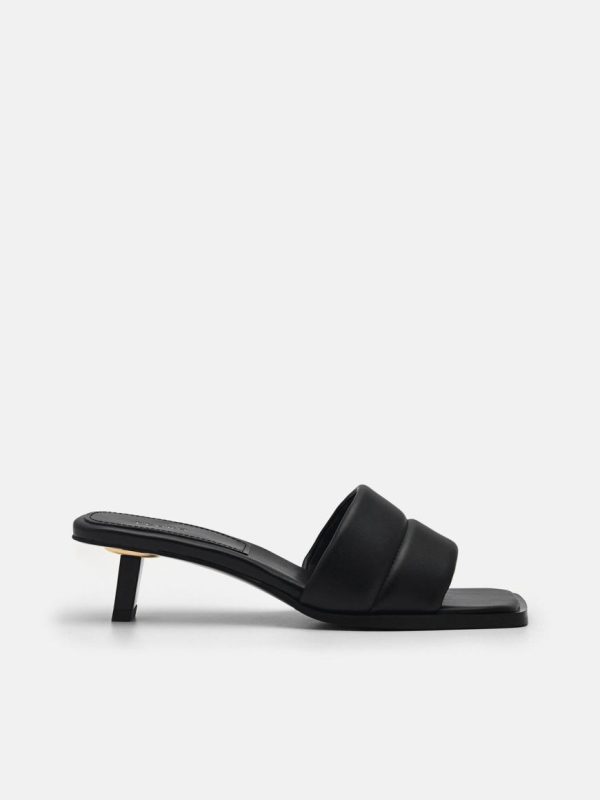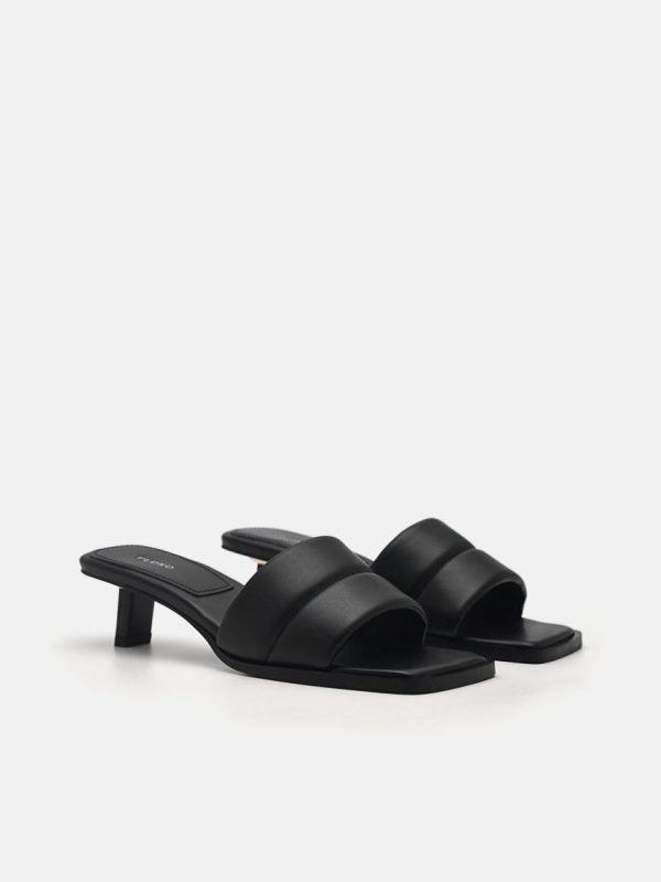 Slide into your new go-to pair with the Heel Slip-On Sandals in black this Chinese New Year. Lifted with a slim block heel for the perfect height, the sandal features a minimally detailed upper characterized with a thick puffy band for added comfort, and finished off with a modern squared toe.