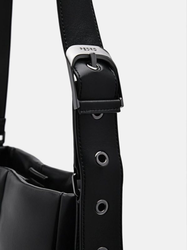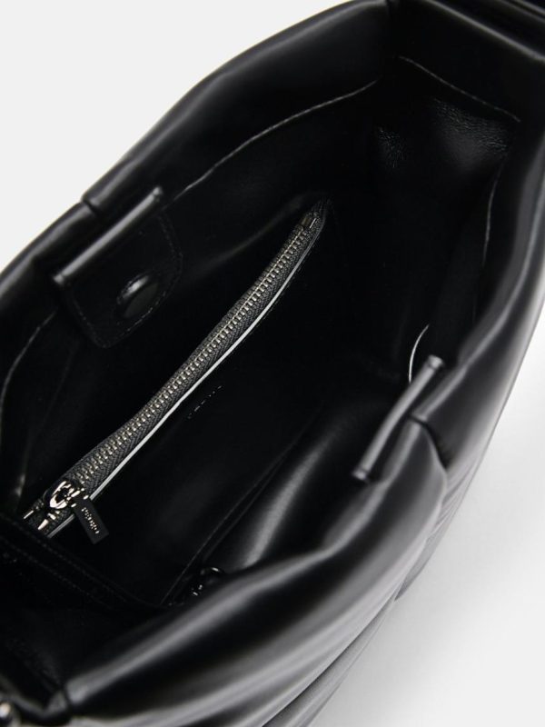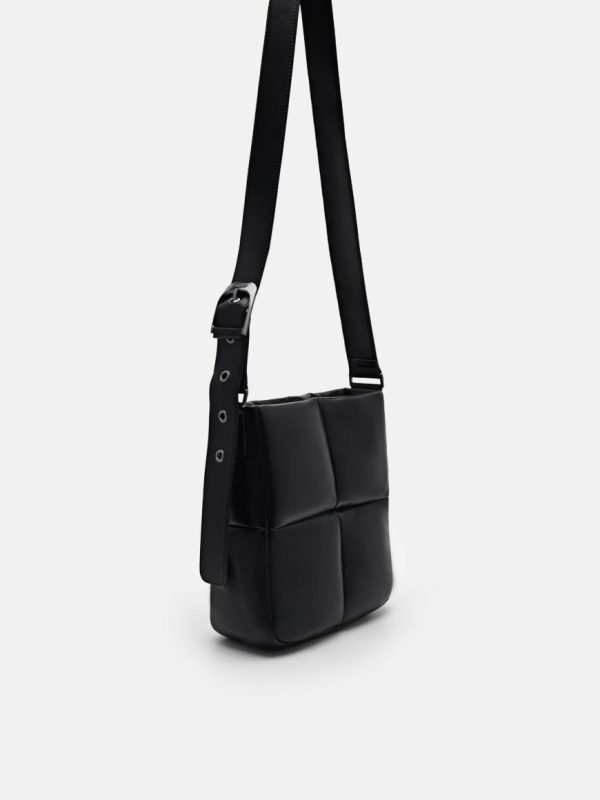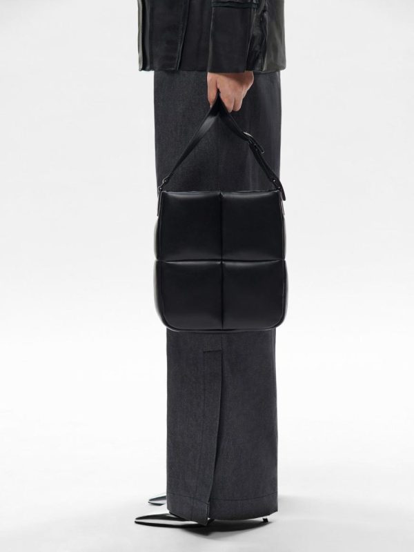 Effortlessly versatile due to its adjustable strap, bring a contemporary twist with the Helix Quilted Shoulder Bag in black. The distinct quilted pattern and square profile exude a minimalistic charm, while the puffy construction adds a touch of trendy allure.