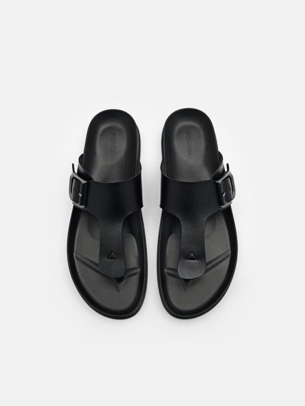 With a moulded footbed providing snug support, the Helix Thong Sandals in black effortlessly combine comfort with sleek design. The unique helix buckle adds visual interest and a touch of contemporary flair to your ensemble, making a subtle yet stylish statement. Pair with tailored shorts and a crisp linen shirt for a sophisticated yet relaxed look that transitions seamlessly from beach to brunch.