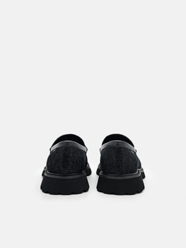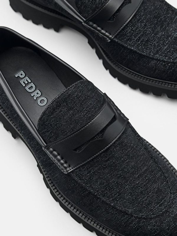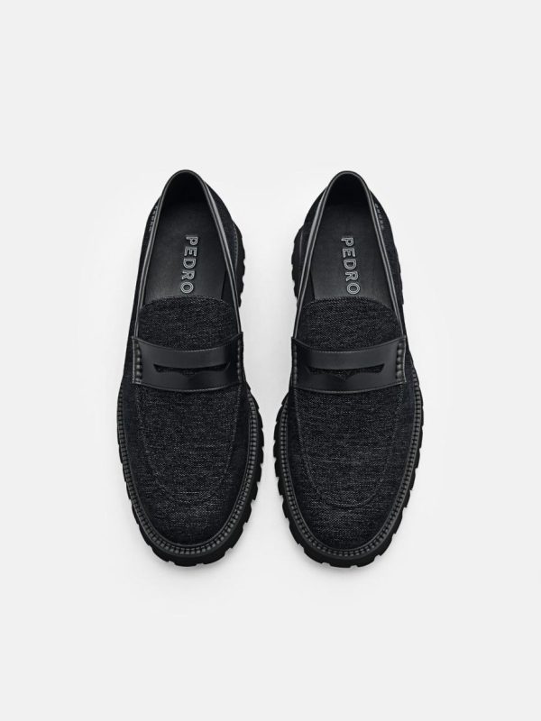 Whether paired with tailored trousers or casual denim, make dressing up a modern affair with the Hudson Penny Loafer in black. Crafted with a sleek fabric upper, these loafers seamlessly blend the classic penny loafer silhouette with a contemporary chunky lugged outsole, perfect for those who appreciate the fusion of tradition and innovation.
