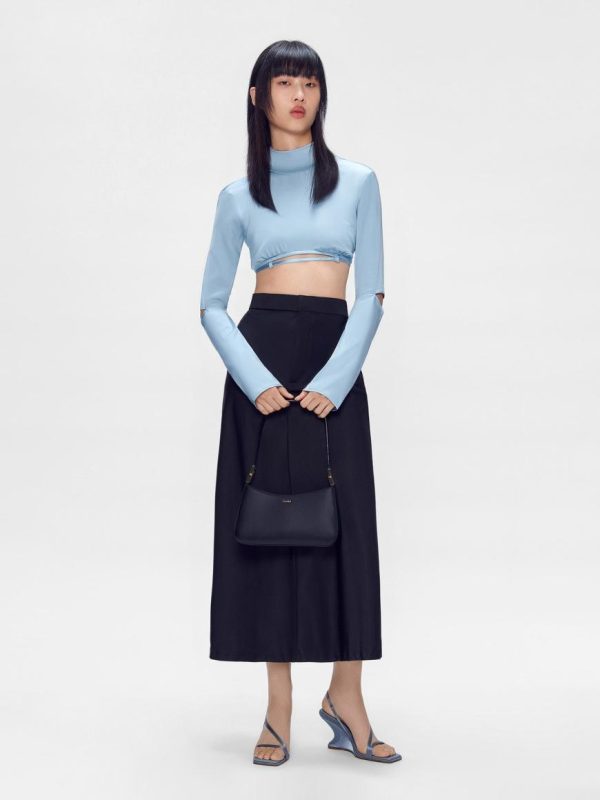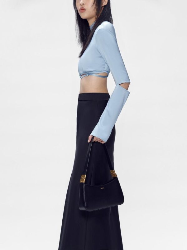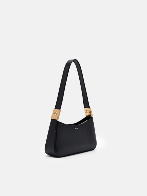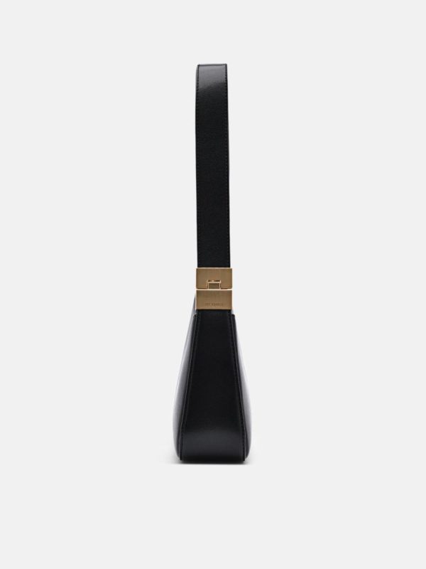 The Jatte Shoulder Bag in black features a roomy design with zipper closure to keep everything you need secure. A relaxed curved design features subtle metallic accents that upgrade the sleek style of this handbag. Pair your outfit with a playful style that can individualize your overall ensemble.