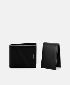 Designed to streamline your essentials, embrace functional elegance with the Leather Bi-Fold Wallet with Insert in black. Crafted from cow leather combined with textured fabric accents, this wallet offers a sophisticated blend of materials for a multi-textured finish. Its bi-fold design features ample card slots, a dedicated cash compartment, and a convenient insert, providing organized storage in a compact silhouette. The cohesive tone-on-tone colour scheme enhances its minimalist aesthetic, ensuring a polished look for any occasion.