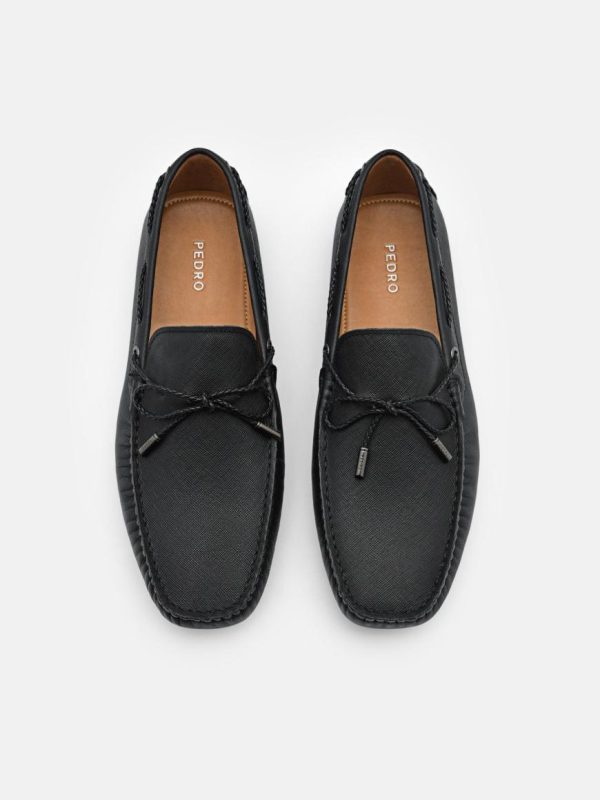 The slip-on silhouette of the Leather Bow Driving Shoes in black effortlessly blends convenience with refined style, complementing a calf suede construction for a durable wear. The contrast-colored lace with metallic eyelets adds a touch of modern flair. Pair these Driving Shoes with tailored chinos and a fitted sweater for a smart casual look, or slim-fit jeans with a crisp white shirt for an effortlessly cool vibe.
