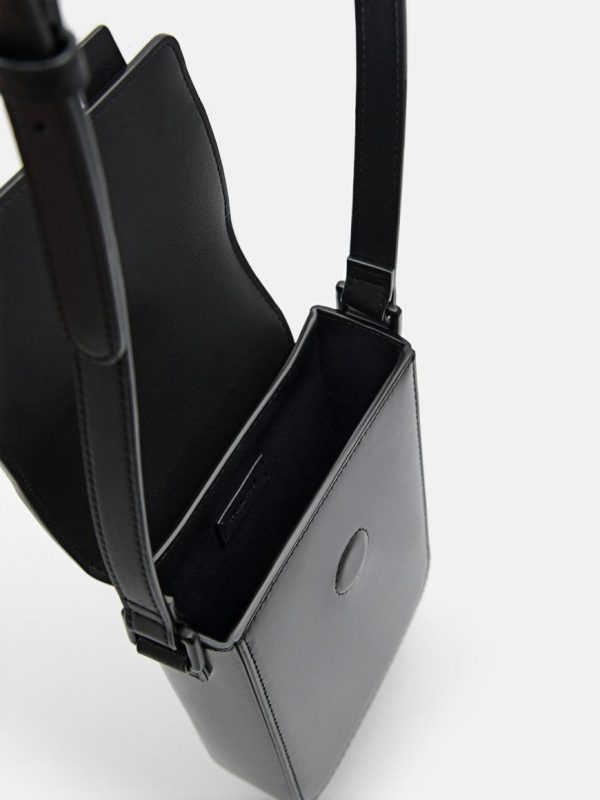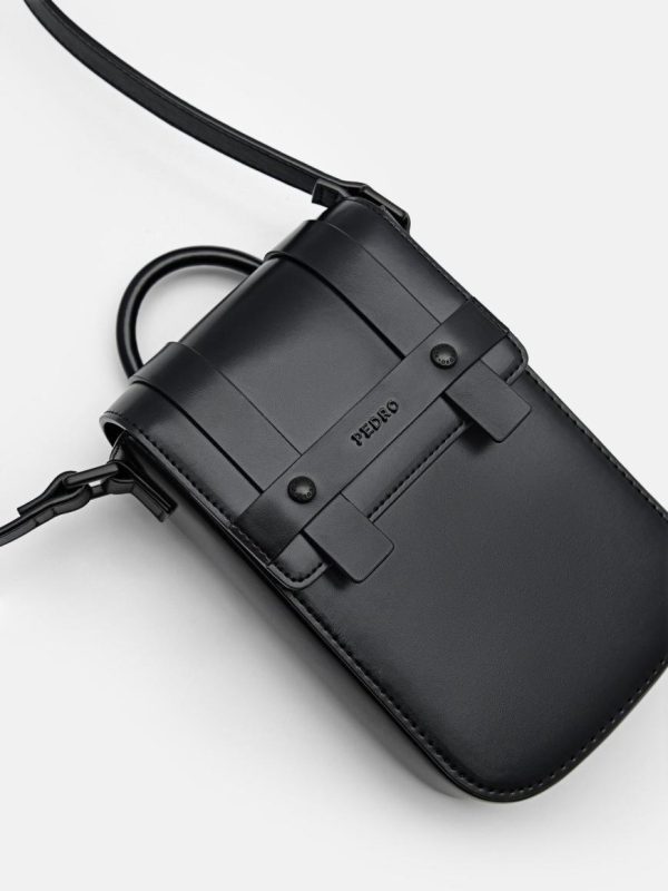 Crafted in cow leather, the Leather Phone Pouch in black features a structured construction for both durability and style. Featuring an adjustable strap for personalization, elevate your aesthetic while keeping your essentials close with this perfect addition to any ensemble.
