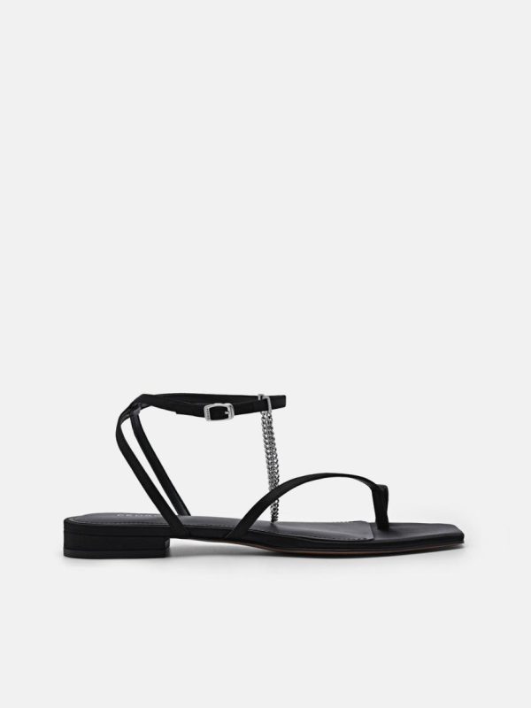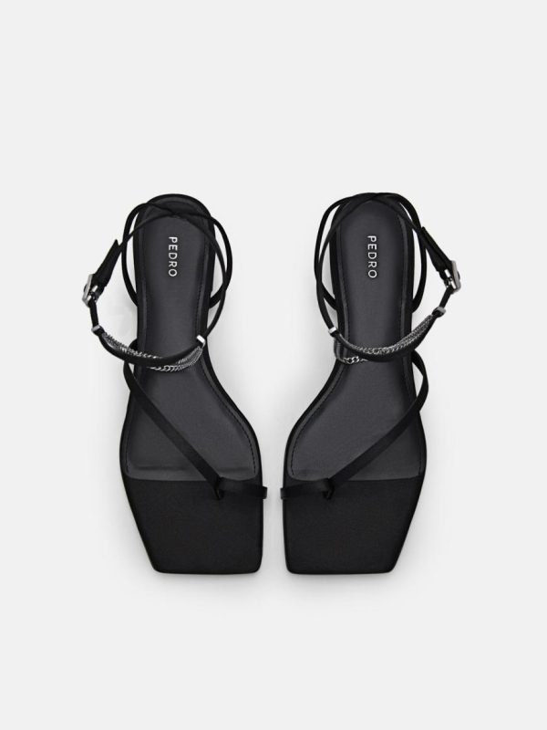 Bring stellar shine to your ensemble with the Lia Ankle Strap Sandals in black. Chic and on-trend, stylish straps with a toe ring and a modern square toe complement the elegant silhouette of the sandal. Secured by an ankle strap, chain-link embellishments tie together looks in a sophisticated way.