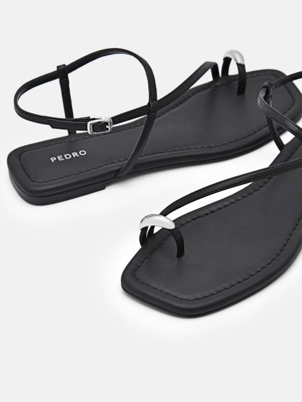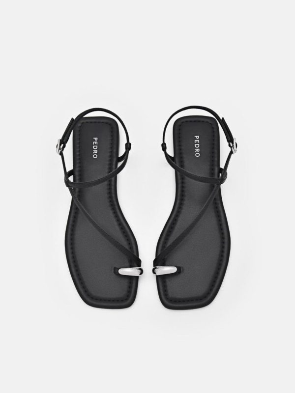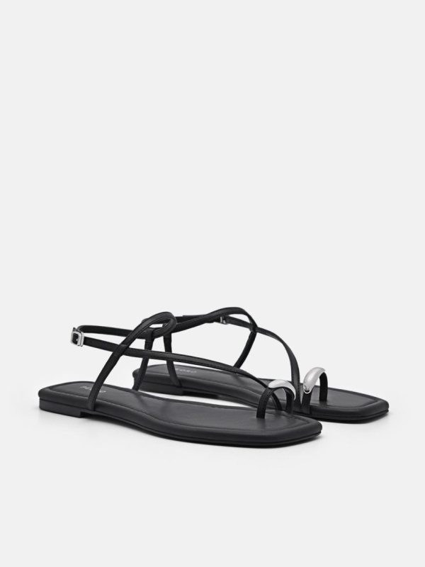 Elevate your everyday style with the sophisticated Lia Toe Ring Sandals in classic black. These versatile flats transition seamlessly from casual daytime wear to evening elegance, featuring a beautifully textured strappy design that adds dimension to any outfit. The distinctive toe ring detail with metallic accents creates a modern, fashion-forward look, while the adjustable slingback buckle ensures a customized, secure fit that stays comfortable all day long.