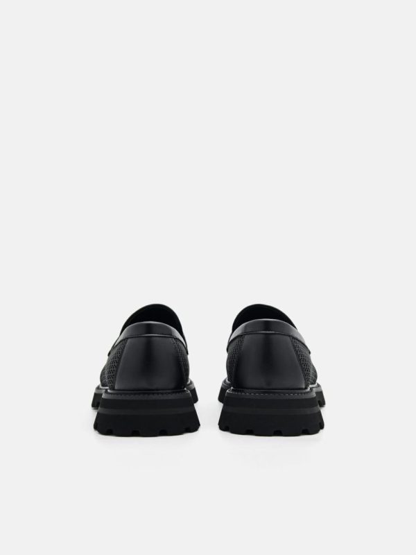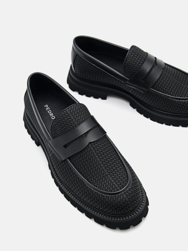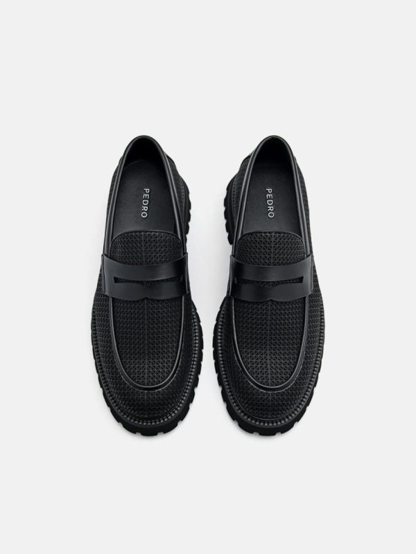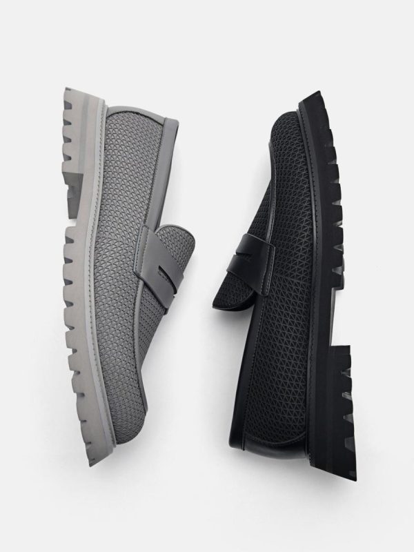 Make a powerful style statement with these Mosaic Fabric Loafers in Pixel that masterfully blend timeless penny loafer craftsmanship with forward-thinking contemporary design. These innovative loafers feature a striking geometric pixel pattern across the upper, creating a perfect fusion of classic appeal and modern edge. The substantial lugged sole delivers both visual impact and everyday comfort, establishing a distinctive silhouette that elevates your modern wardrobe essentials.
