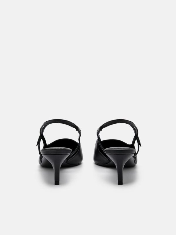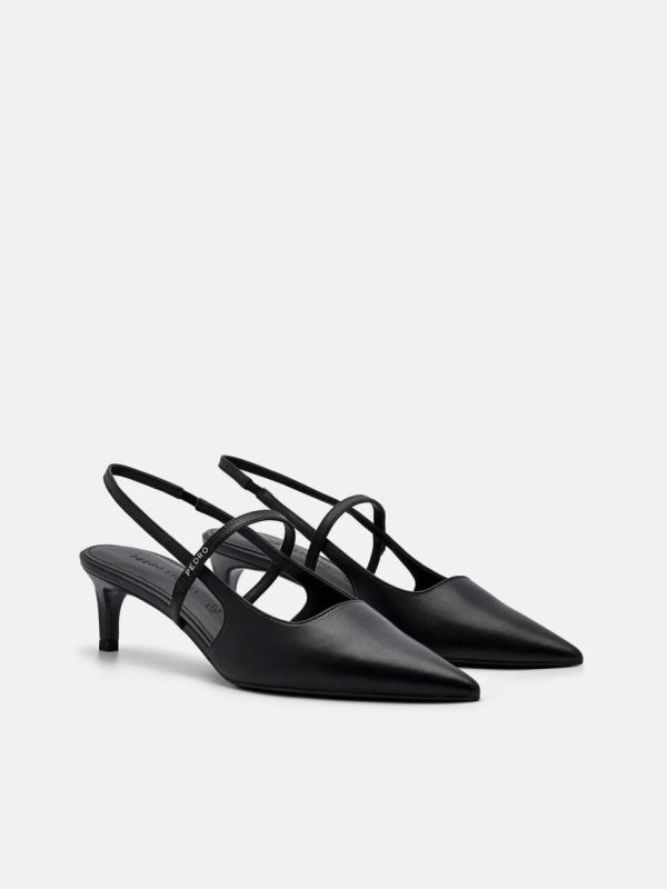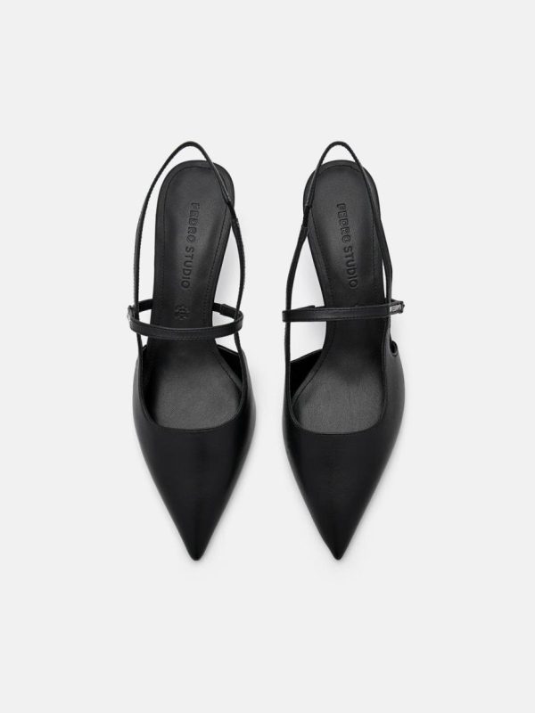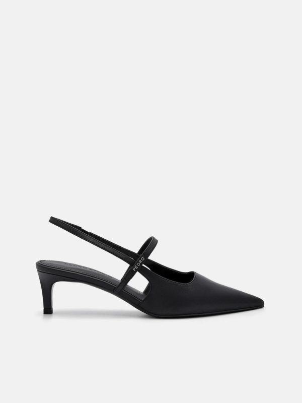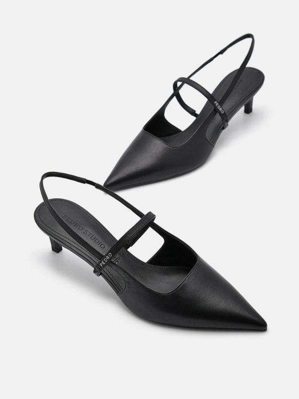 Elevate your professional wardrobe with these sophisticated black heel pumps from PEDRO Studio. The Amerie features a modern pointed toe design that creates a sleek, leg-lengthening silhouette. Expertly crafted from premium kid leather that molds comfortably to your foot, these pumps combine lasting durability with everyday comfort. The slender heel provides just the right amount of elevation while the adjustable slingback strap ensures a secure, customized fit that stays comfortable all day.
