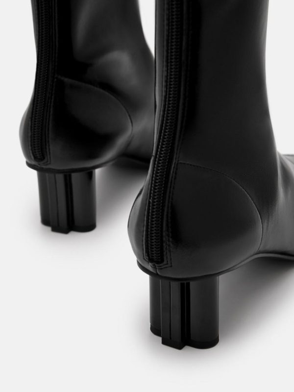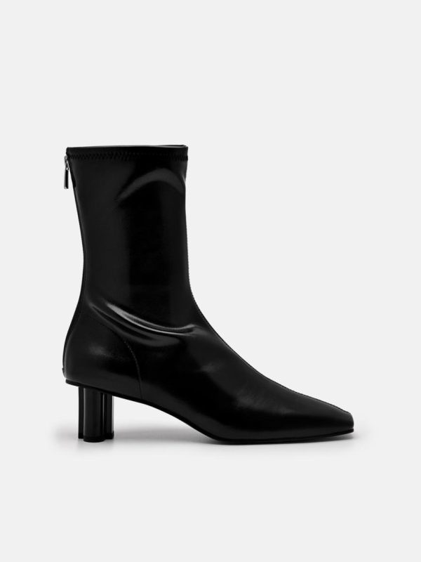 Discover the essence of timeless elegance and modern allure with the PEDRO Icon Ankle Boots in black. Crafted with a distinctive wrinkled texture and a squared toebox, these boots embody understated sophistication. Minimal detailing enhances their sleek silhouette, while the iconic monogram heel adds a touch of contemporary flair. A discreet back zipper ensures ease of wear, combining practicality with refined style effortlessly.