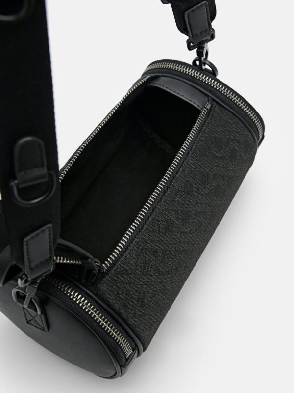 Elevate everyday essentials with the PEDRO Icon Jacquard Sling Bag in black, featuring a fabric construction adorned with the iconic monogram branding. Designed with the modern urbanite in mind, it features multiple D-rings strategically placed for attachment outlets, allowing personalization and customization.