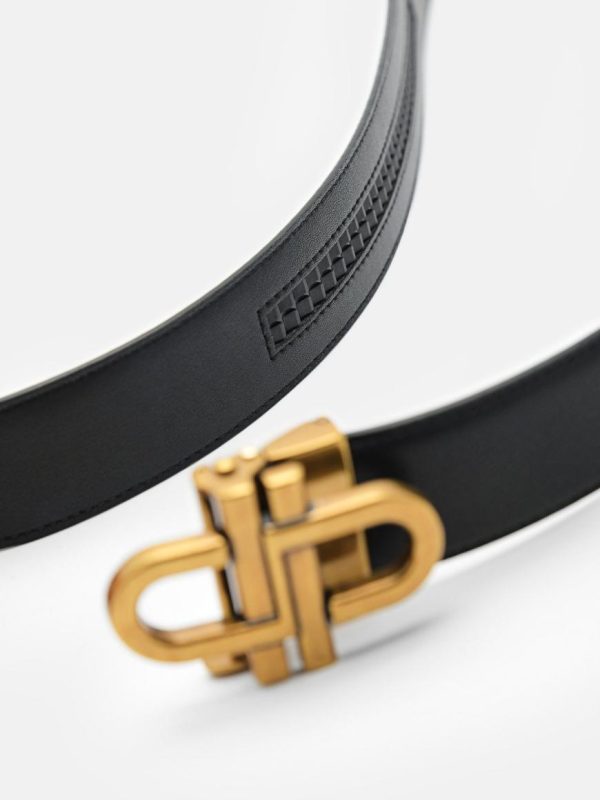 The PEDRO Icon Leather Automatic Belt in black combines timeless elegance with practical functionality. Crafted from embossed calf leather, its standout feature is the gold Icon buckle for a touch of refinement. With its automatic fastening, adjusting your belt has never been easier.