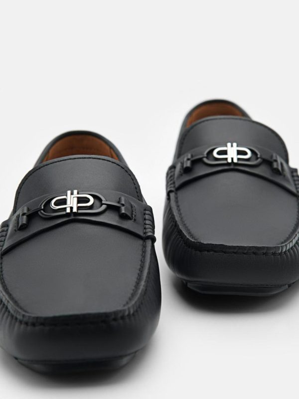 Both timeless and refreshingly modern, unleash urban charisma with the PEDRO Icon Leather Driving Shoes in black. Crafted from boxed calf leather, a contrasting upper fabric provides a striking combination of textures and visual appeal while a monogrammatic Icon hardware adds urban edge to a smart casual design that bridges the gap between laid-back cool and polished elegance.