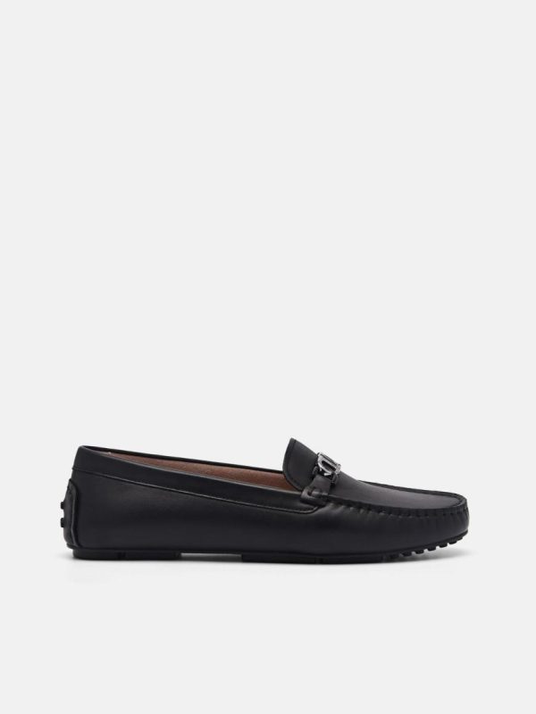 Achieve that androgynous look with this pair of PEDRO Icon Leather Driving Shoes in black. They are decorated with interlocked gold links that balance out the masculinity with sophistication.