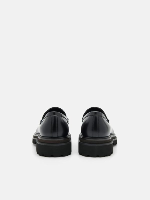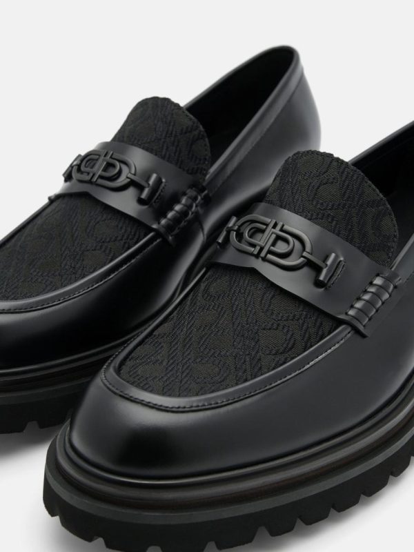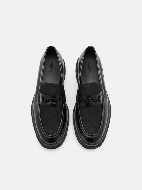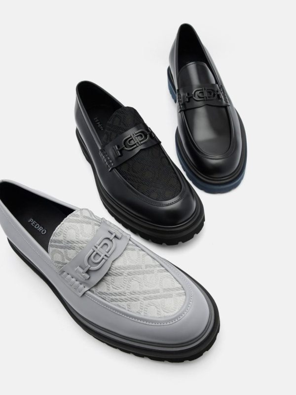 A bold fusion of street-style swagger and modern refinement, the PEDRO Icon Leather Loafers in black are crafted with boxed calf leather and bear the undeniable Icon motif across the upper for an edge that speaks to the urban spirit. The chunky lugged sole not only provides superior traction but also adds a rugged flair, while hardware detailing adding an extra touch of attitude.