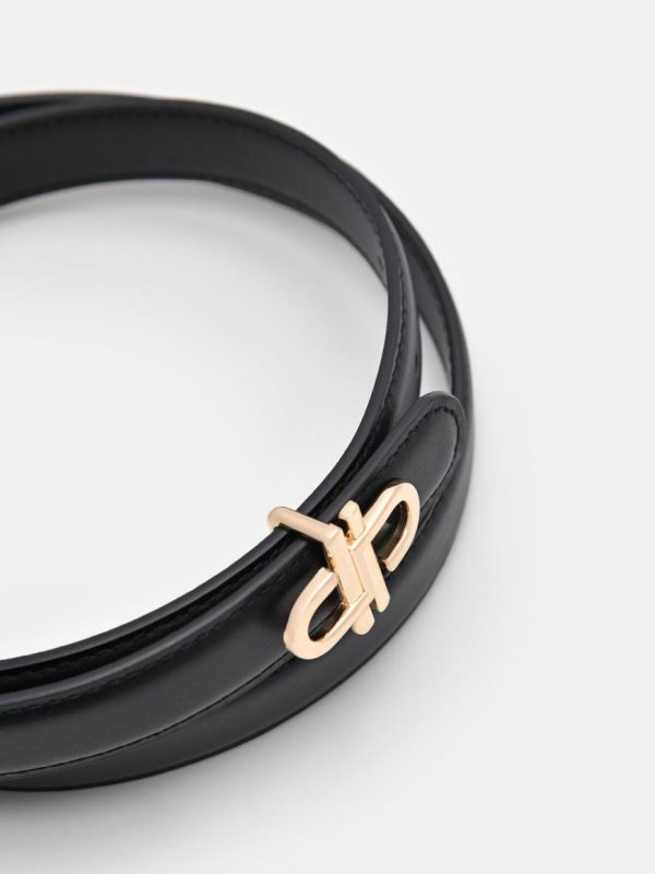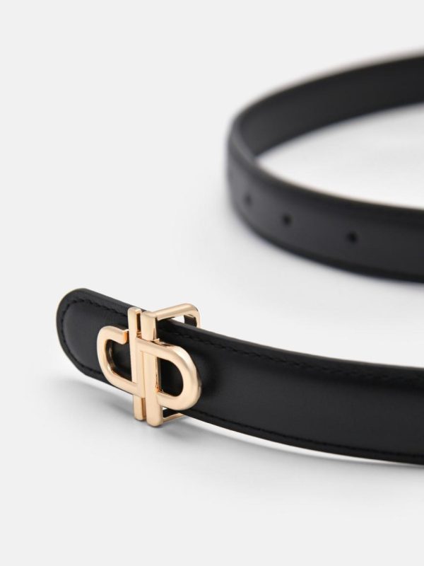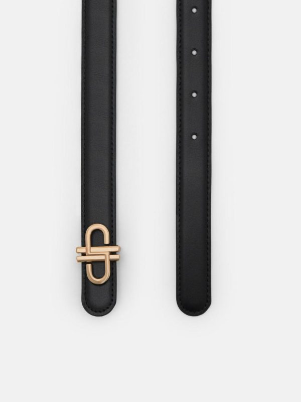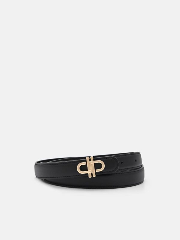 Elevate your formal attire with the PEDRO Icon Leather Tang Belt in black. Made from calf leather, this belt features a classic tang closure and a distinctive Icon monogram buckle that adds a touch of sophistication. Designed to seamlessly spruce up any formal ensemble, it embodies timeless elegance and modern style, making it an essential accessory for the discerning individual.