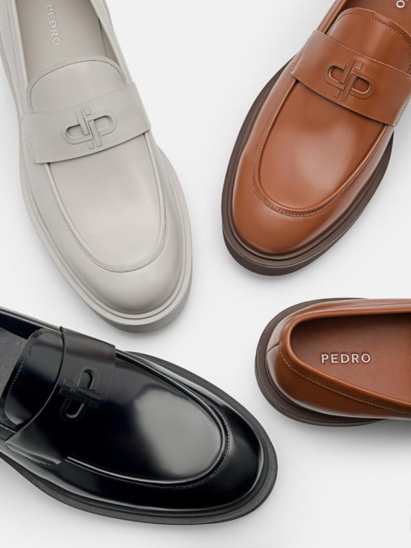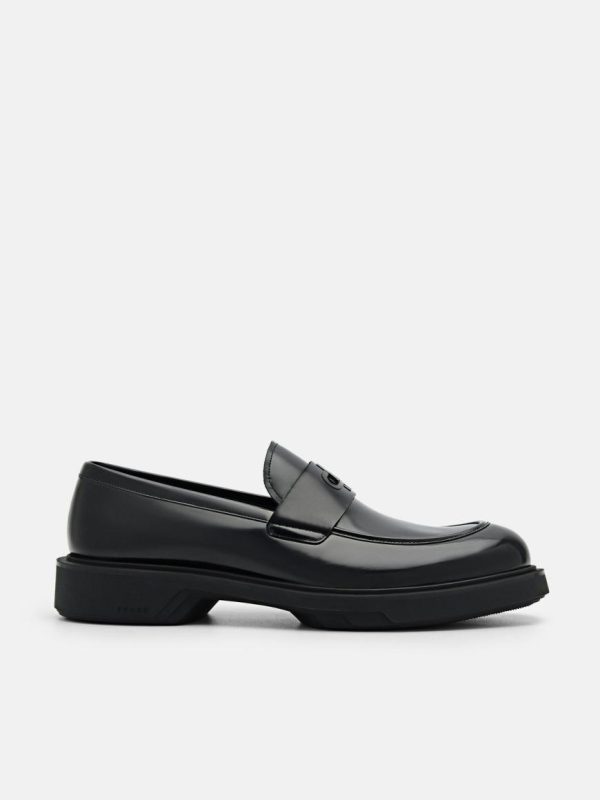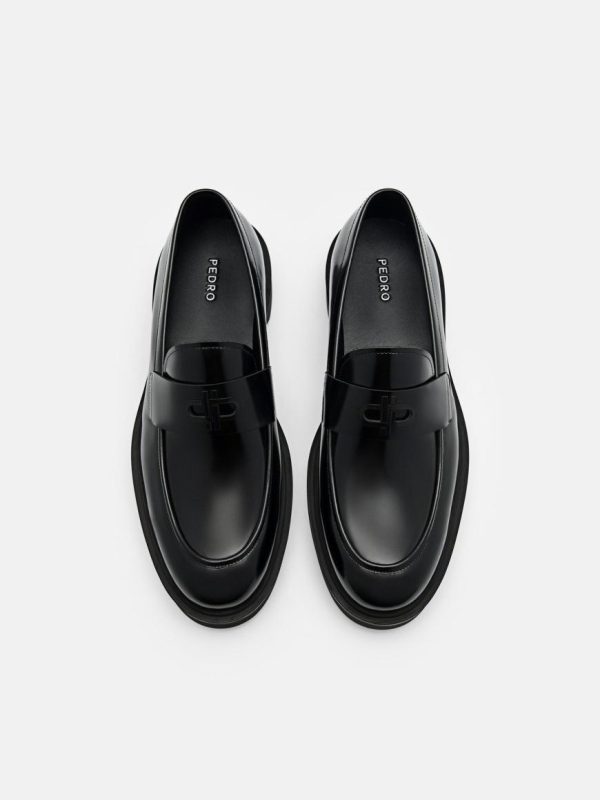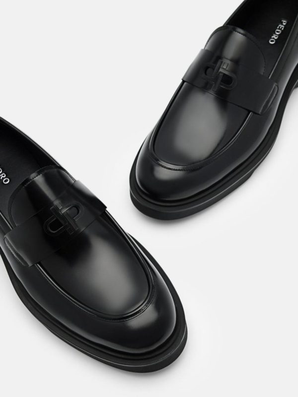 Black PEDRO Icon Loop Leather Penny Loafers ™ | Men PEDRO Loafers & Buckles