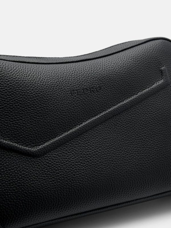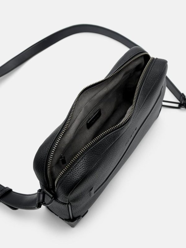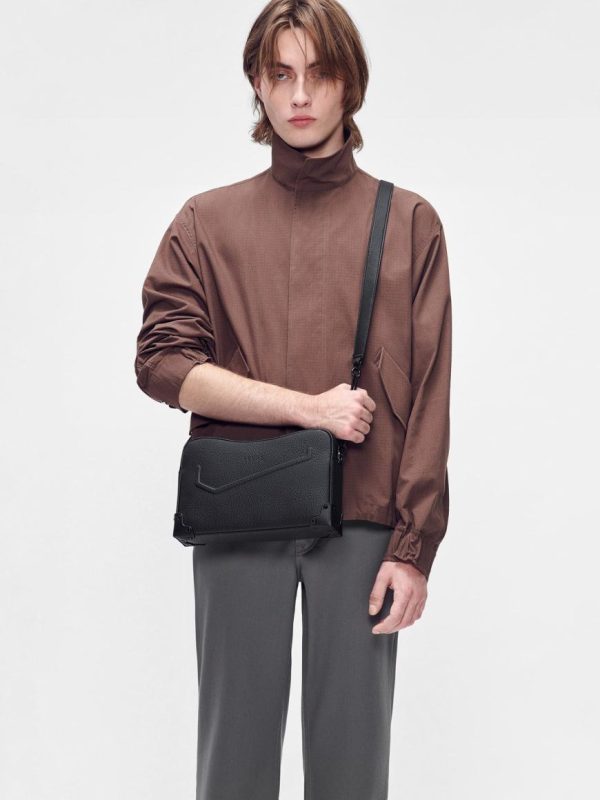 Expertly crafted from premium embossed calf leather, this sleek black sling bag delivers exceptional durability and sophisticated style for everyday wear. The adjustable shoulder strap provides customized comfort and perfect positioning, while the structured yet flexible design offers the ideal combination of polished elegance and practical functionality.