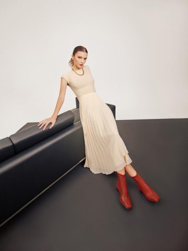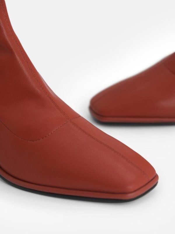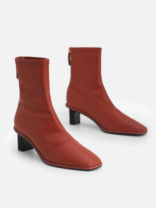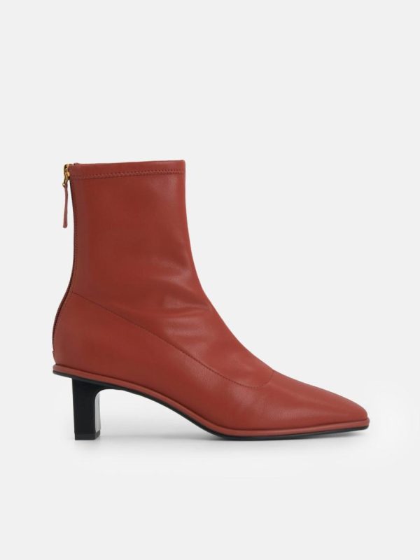 Minimalist and stylish natural PU ankle boots in brick with heels and a zipper closure – great for urban girls night out.