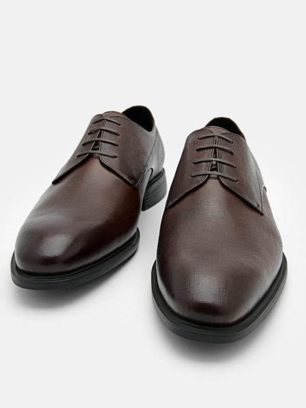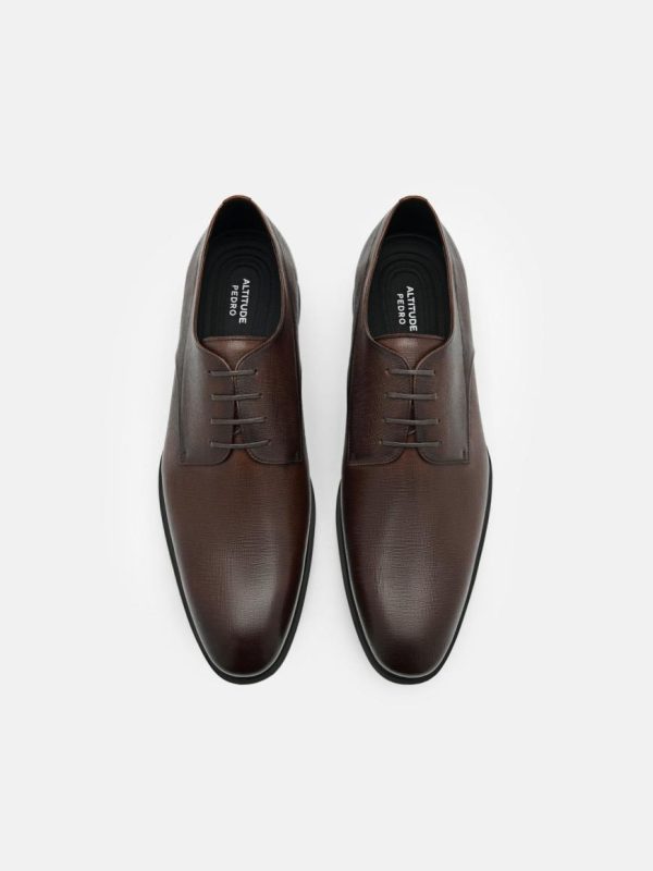 A harmonious blend of refined elegance and contemporary versatility, the Altitude Lightweight Leather Derby Shoes in brown exude a subtle yet captivating texture that catches the light with an embossed burnished cow leather construction. The pointed square toebox lends a touch of modernity, while the Comfort Cup insole and lightweight construction ensures all-day comfort without compromising on style.