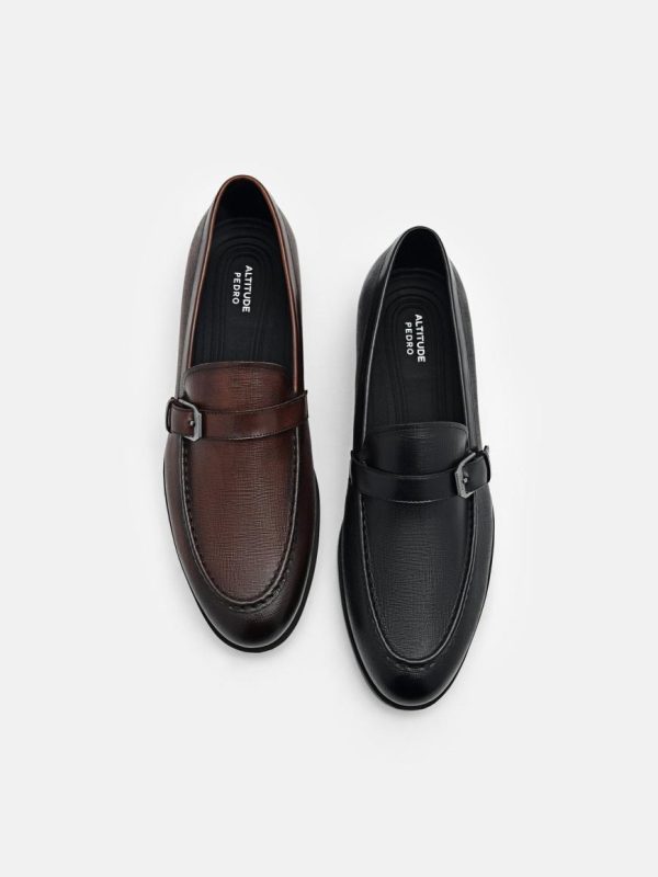 Elevate your style with the Altitude Lightweight Saffiano Leather Loafers, designed for the modern man who values both sophistication and comfort. Crafted from saffiano leather, renowned for its durability and unique cross-hatch texture, these loafers exude timeless elegance. The lightweight construction ensures all-day comfort, while the sharp and modern buckle detail adds a touch of subtle shine, elevating the classic loafer silhouette to new heights of sophistication.