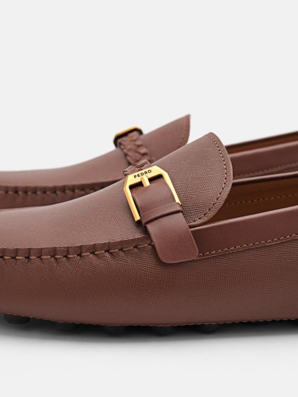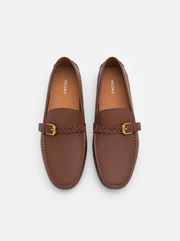 Experience exceptional comfort and refined style with our premium brown Saffiano Leather Driving Shoes. Expertly crafted from durable, flexible saffiano leather, these shoes deliver lasting performance and sophisticated appeal. The artisanal woven strap detail adds distinctive character, while the textured pebbled outsole ensures reliable grip and stability whether you’re driving or walking.
