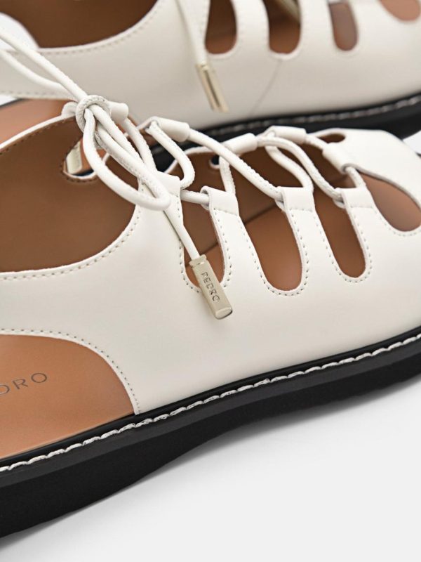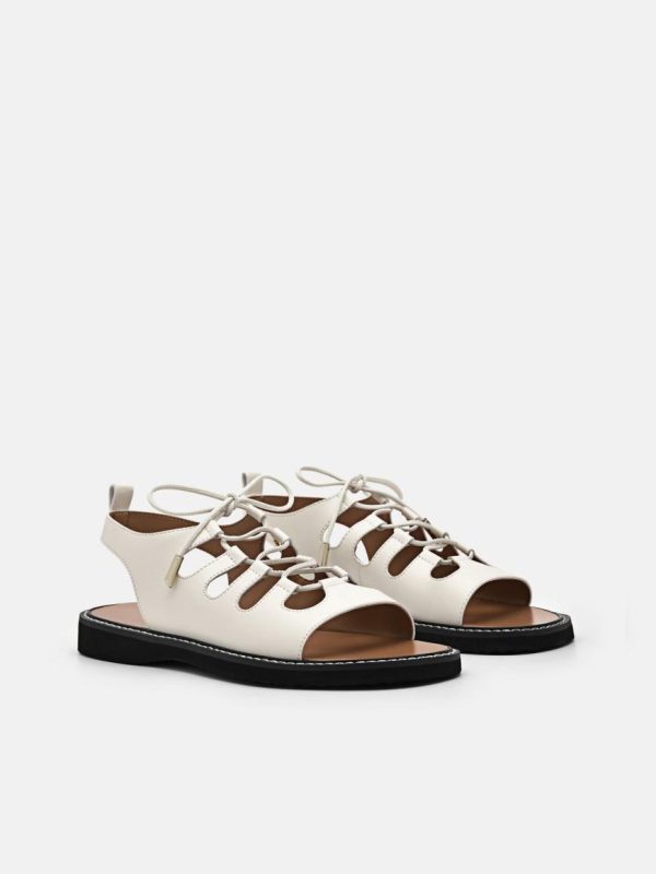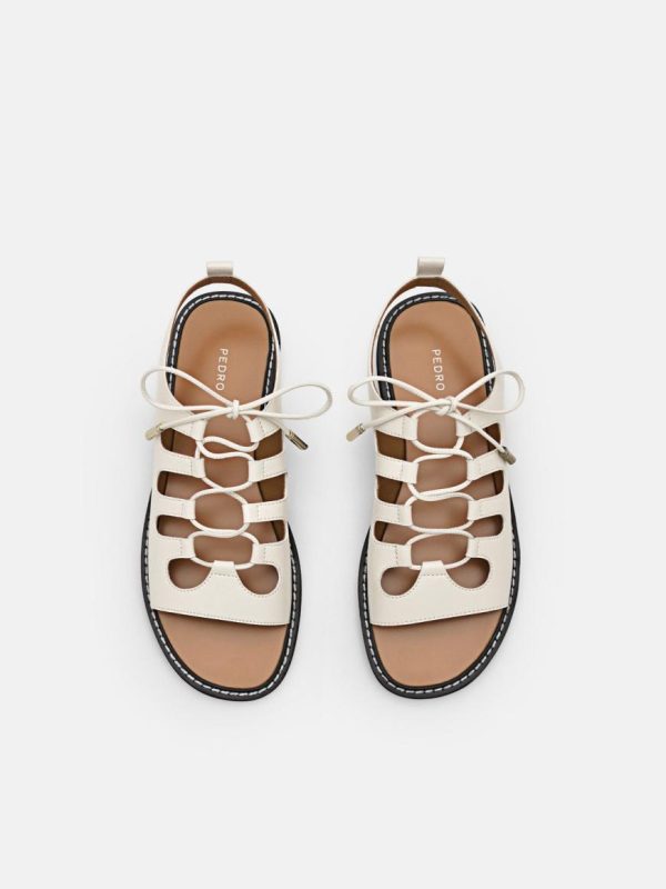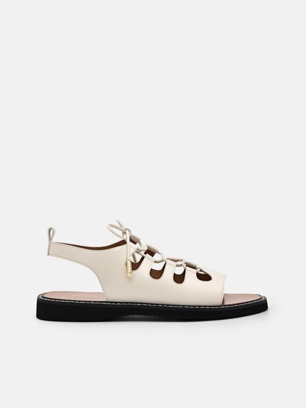Tie together simple looks in an intricate way with the meticulously designed Ethel Laced Sandals in chalk. The sandal features a contemporary silhouette complete with interlacing along the upper and a modern open toe design, for an ideal finishing piece for everyday looks and dressier options alike.