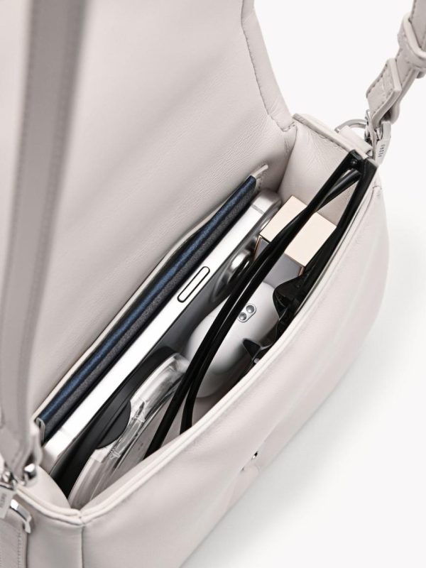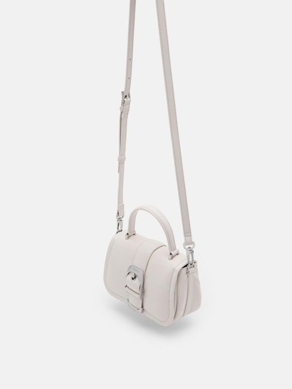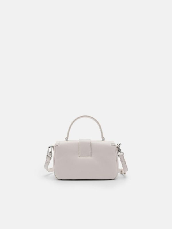 Experience contemporary elegance with the Helix Mini Shoulder Bag featuring rounded edges and a plush puffy construction in a versatile chalk hue. This stylish accessory combines modern sophistication with practical functionality, enhanced by striking metallic buckle hardware that adds a touch of elevated detail. Enjoy versatile carrying options with the polished top handle or convert to hands-free convenience using the removable crossbody strap.