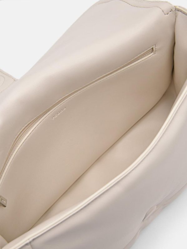 Elevate your everyday style with the effortlessly chic Helix Shoulder Bag in versatile chalk. This modern accessory features a beautifully puffed construction that creates dimension and soft rounded edges, giving it a contemporary silhouette that transitions seamlessly from day to night. The elegant envelope flap and signature buckle hardware add sophisticated detailing while maintaining a perfectly balanced casual-yet-polished aesthetic that complements any outfit.