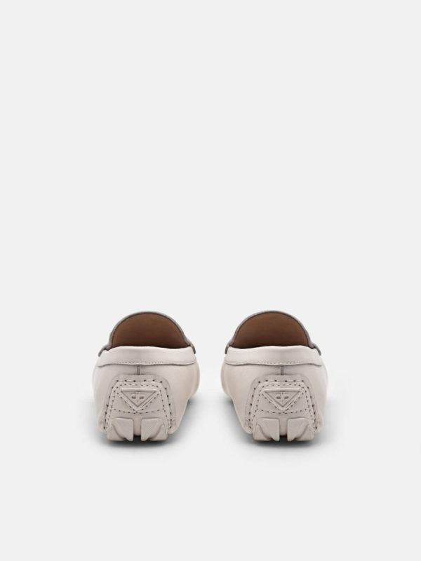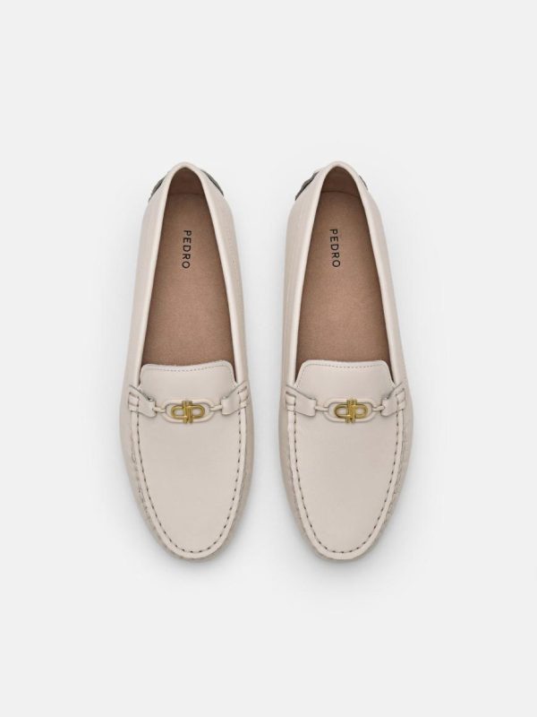 Make your city adventures stylish and comfortable with the PEDRO Icon Leather Horsebit Driving Shoes in chalk. This slip-on in calf leather is detailed with classic moccasin whipstitch and flexible outsole. The statement Icon monogram hardware adds a touch of refinement, making each step a crisp and defined statement in urban elegance.