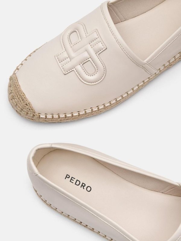 Meticulously fashioned from kid leather, step into modern style and refined comfort with the PEDRO Icon Leather Loafers in chalk. Embrace a summer-ready feel with the woven fabric midsole, enhancing the slip-on silhouette for an easy, laid-back vibe. Adorned with the Icon monogram across the vamp for a touch of exclusivity, infuse a bohemian allure into your everyday style.