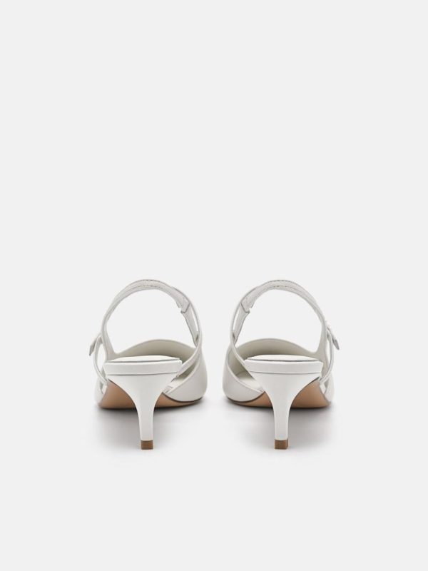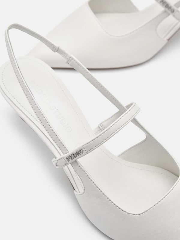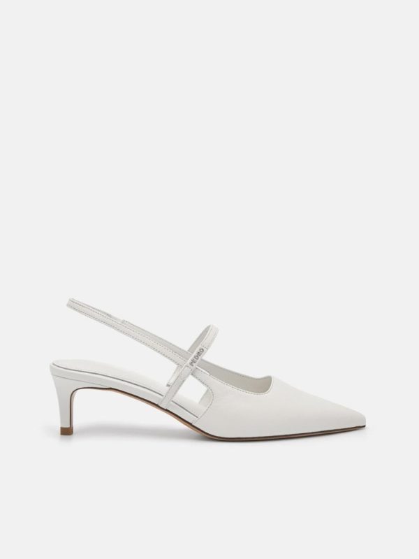 Sleek and stylish, the PEDRO Studio Amerie Leather Heel Pumps in chalk feature a timeless silhouette with a modern pointed toe. Crafted from kid leather for a supple yet durable wear, the slender heel elevates the outlook of this pump while the stretchy slingback strap offers a snug fit.