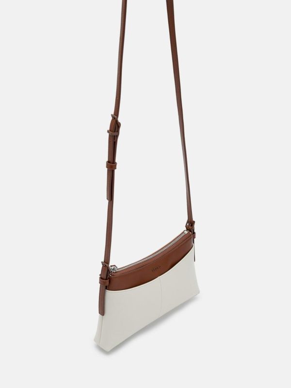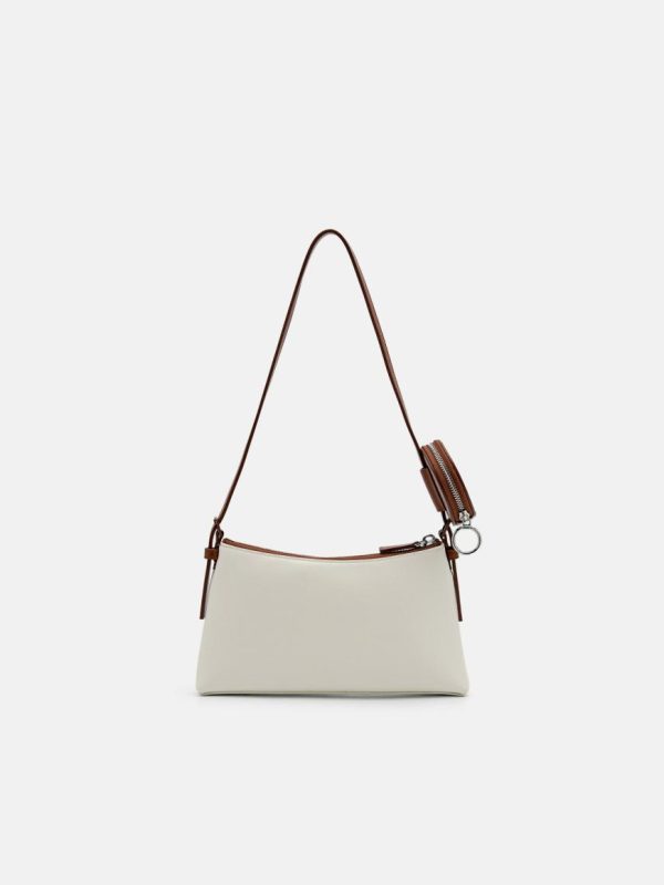 Elevate your accessory game with this chic chalk-colored sling pouch featuring a sleek compact design. Showcasing contemporary style with its angular silhouette and discreet branding, the detachable crossbody strap offers versatile styling options and includes a convenient keychain pouch for extra organization.