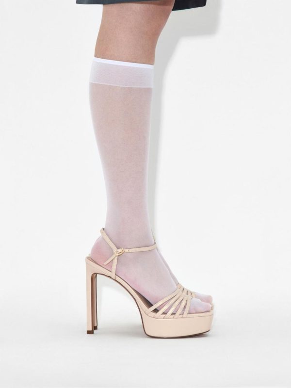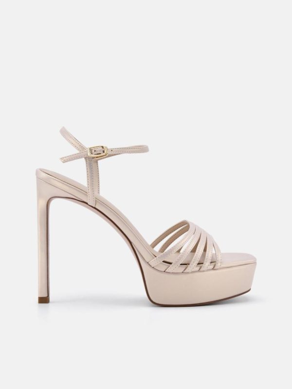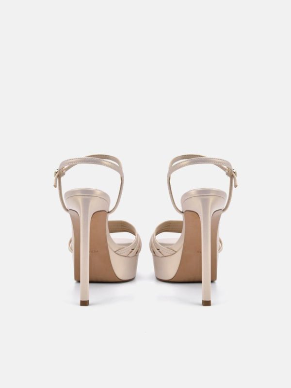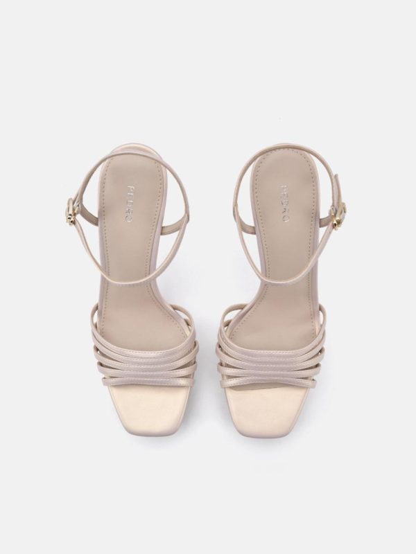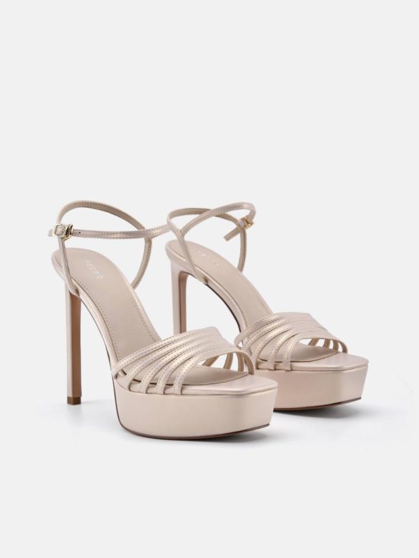 Modern straps, a thin elongated heel, and a modern square toe complement the classic silhouette of the Iza Platform Heel Sandals in champagne. Exhibit contemporary allure with a chunky platform that offers a luxe appeal, made adjustable with an ankle buckle closure.