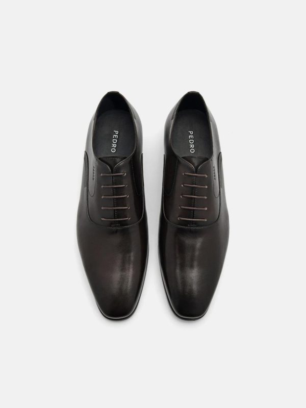 Dark Brown Burnished Leather Oxford Shoes for Men | PEDRO