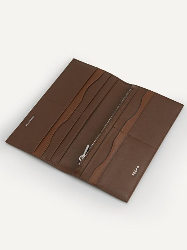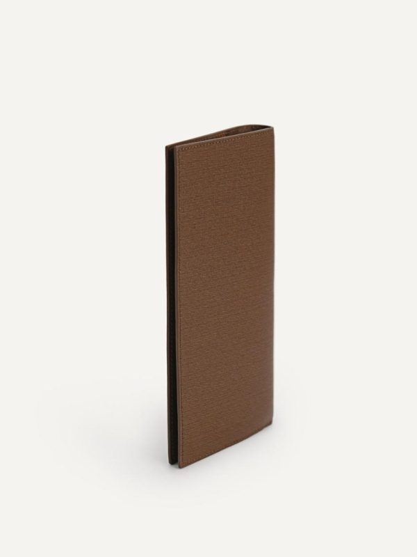 Long wallets have an opulent appeal to them; they almost resemble chequebooks. While the construction is typically seen more frequently in women’s collections, this season, we flipped the script and turned it into a men’s essential. This hazel Brown Full-Grain-Long Leather Wallet is an example. It has a luxurious embossed finishing, which complements the sleek silhouette. Not to mention, it features a zip compartment to store loose change – an element that is rare to find in men’s wallets these days.