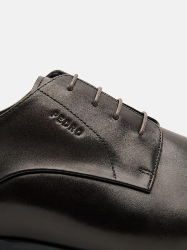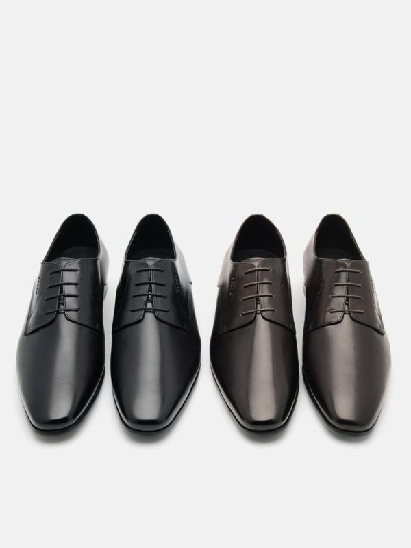 Crafted from burnished calf leather, balance formality with ease when wearing these Leather Derby Shoes. Rooted in tradition yet designed for today, the polished surface and soft texture of burnished calf leather is complemented by an open-laced design for versatility, while a subtly squared toe lends a contemporary edge to this classic staple.