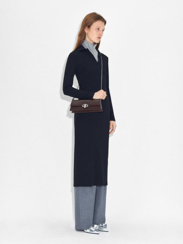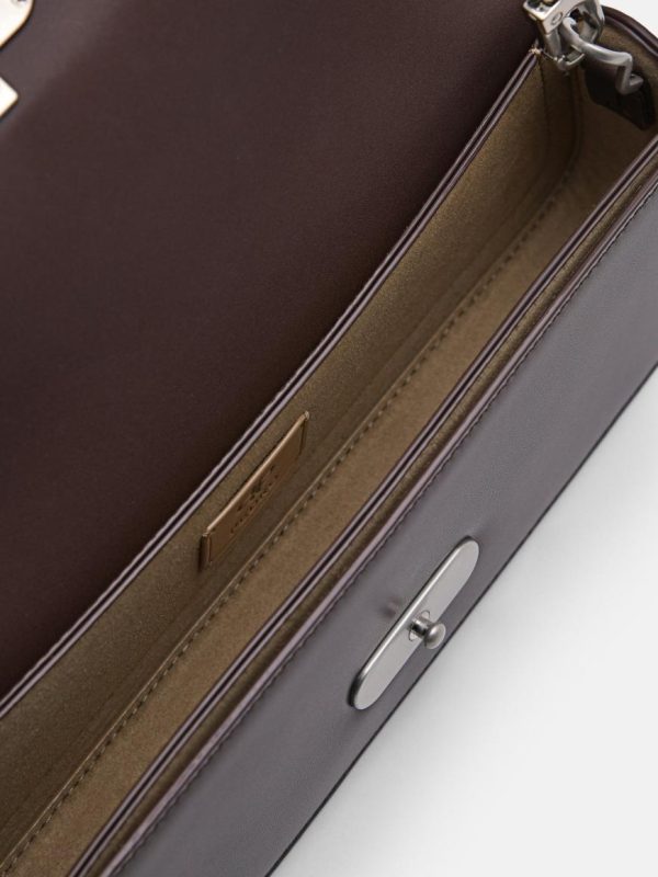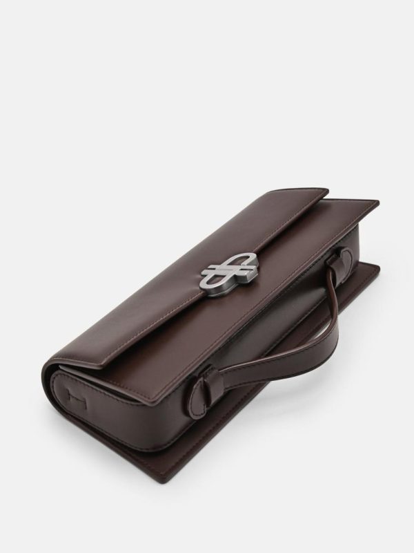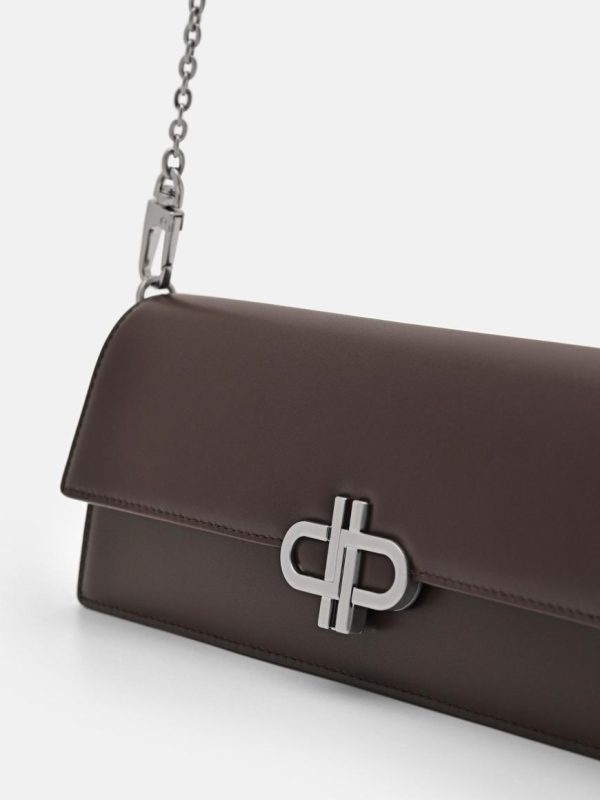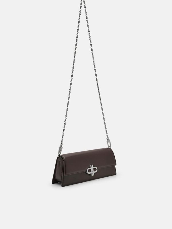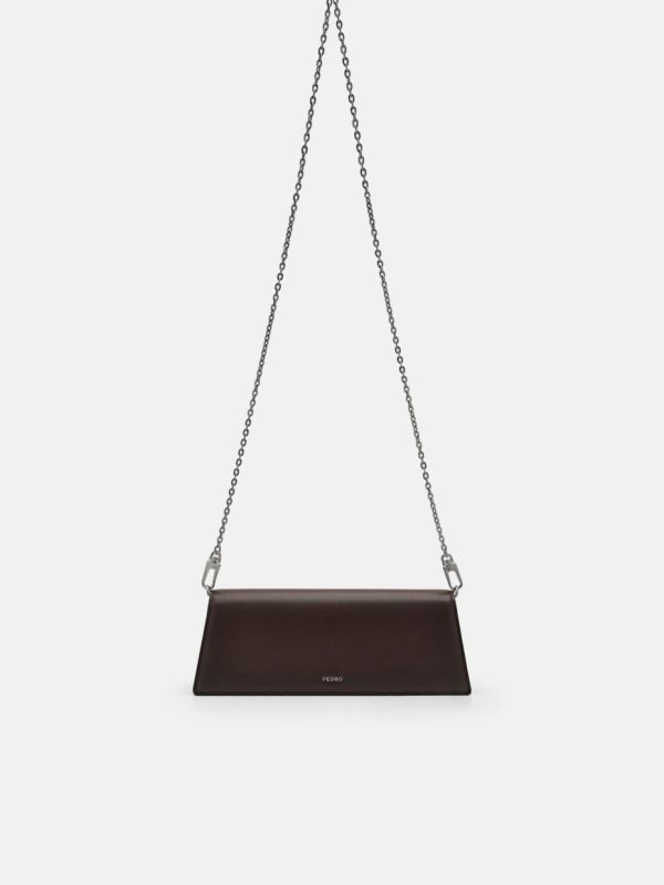 Enhance your ensemble with the understated refinement of the PEDRO Icon Leather Clutch Bag in dark brown. Crafted from luxurious calf leather, its sleek, elongated silhouette embodies timeless elegance, making it an essential companion for sophisticated occasions. Designed for versatility, this baguette-shaped clutch features a removable chainlink shoulder sling for effortless wear. The hardware, elegantly shaped in the iconic monogram motif, adds a discreet touch of opulence.