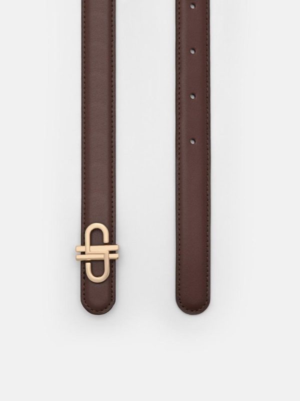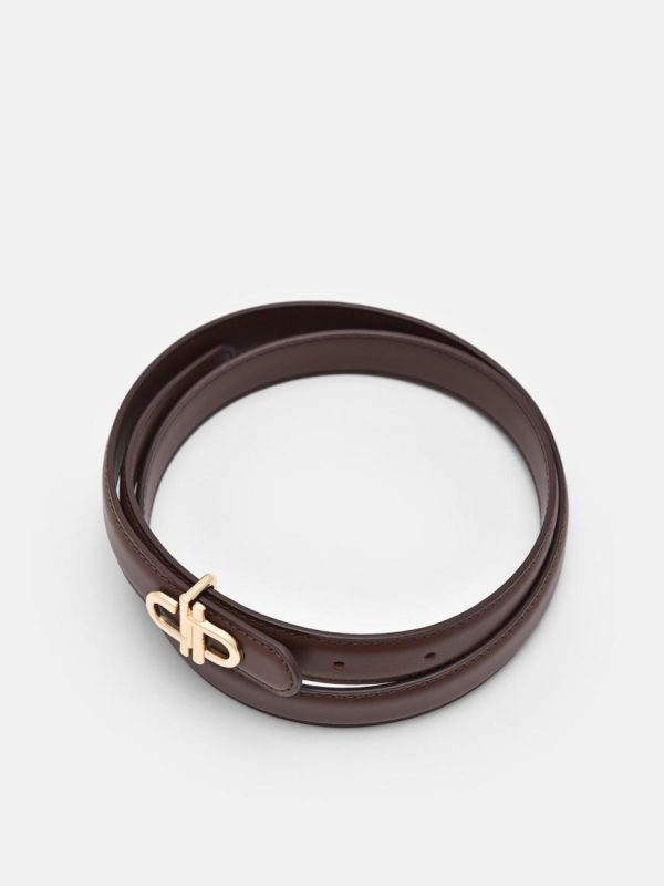 Elevate your formal attire with the PEDRO Icon Leather Tang Belt in dark brown. Made from calf leather, this belt features a classic tang closure and a distinctive Icon monogram buckle that adds a touch of sophistication. Designed to seamlessly spruce up any formal ensemble, it embodies timeless elegance and modern style, making it an essential accessory for the discerning individual.