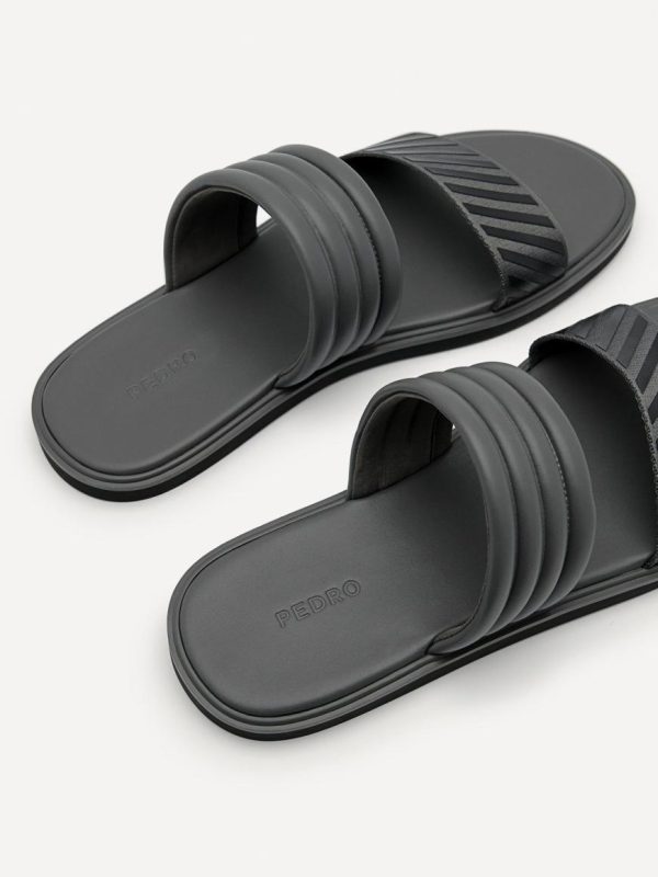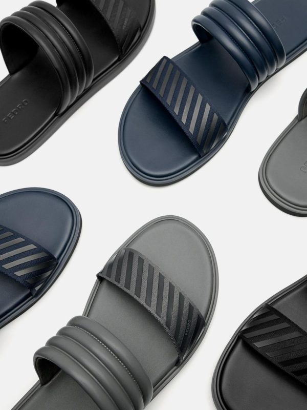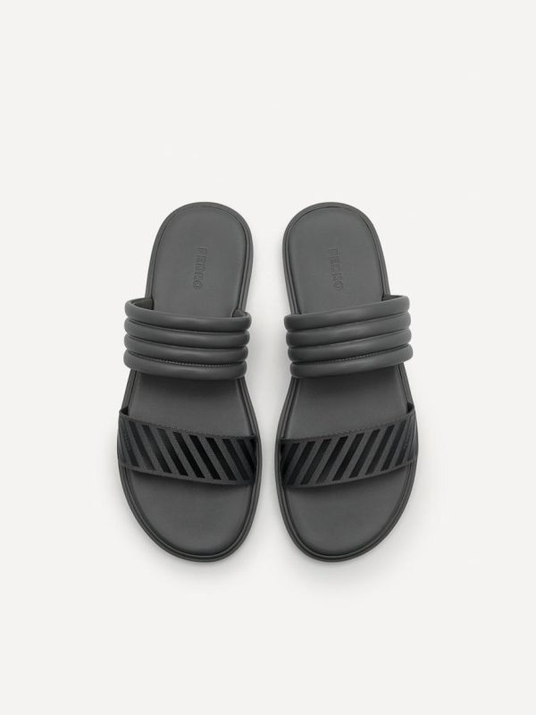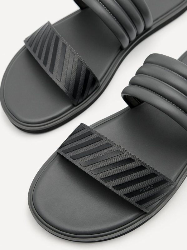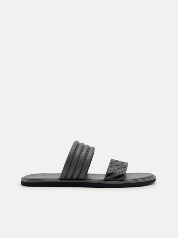 A city appropriate spin on the summer classic, the Band Slide Sandals in dark grey are the answer to easing your soles and effortlessly complementing any dress-down and casual look. Add some style to your laidback ensemble with double bands that give off a textured look and enjoy comfort with a cushioned footbed.